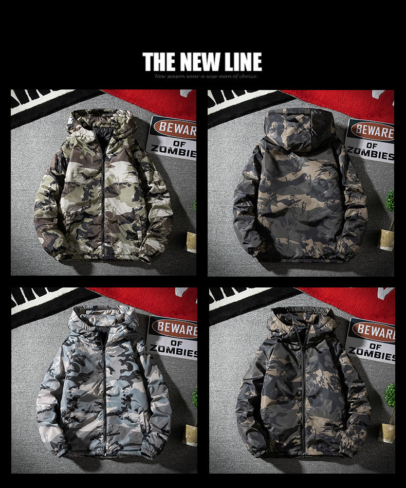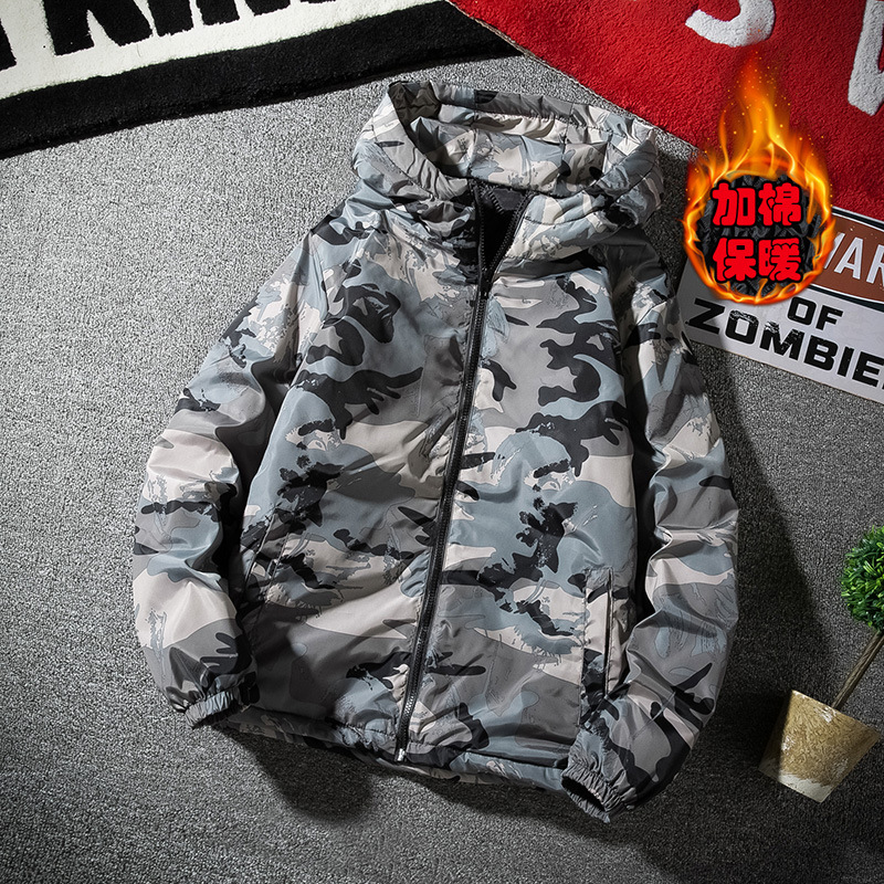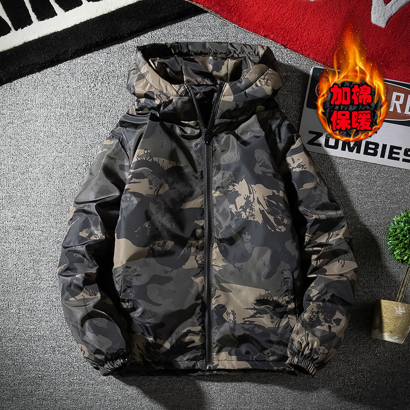 남성용 대형 사이즈 면옷 2025 가을 겨울 신상 후드 루즈핏 면옷 청년용 카모플라주 이중 면 자켓스토어 가기