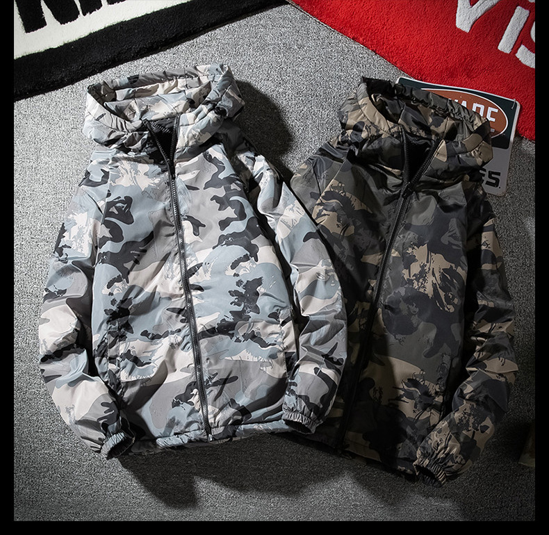 남성용 대형 사이즈 면옷 2025 가을 겨울 신상 후드 루즈핏 면옷 청년용 카모플라주 이중 면 자켓