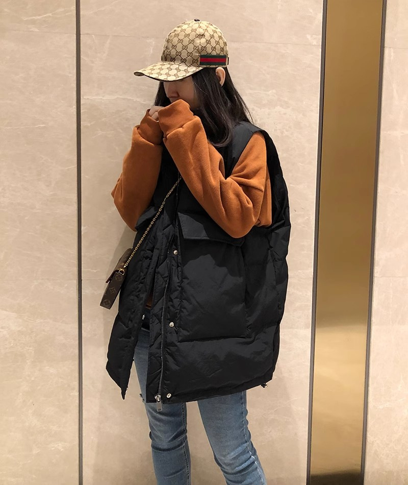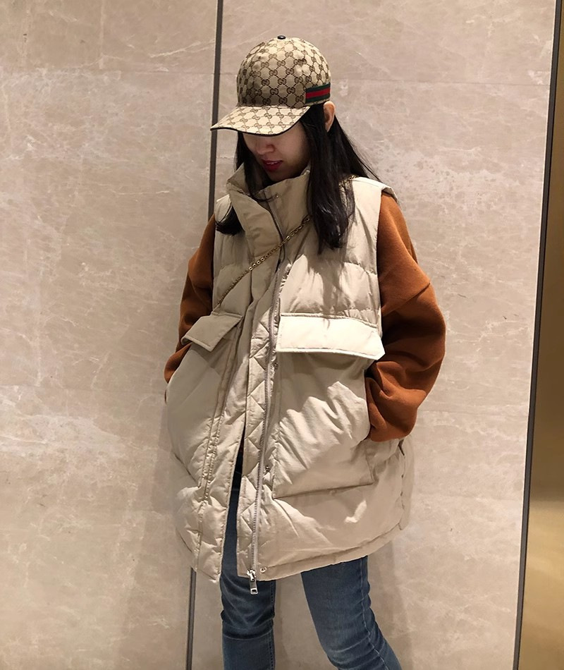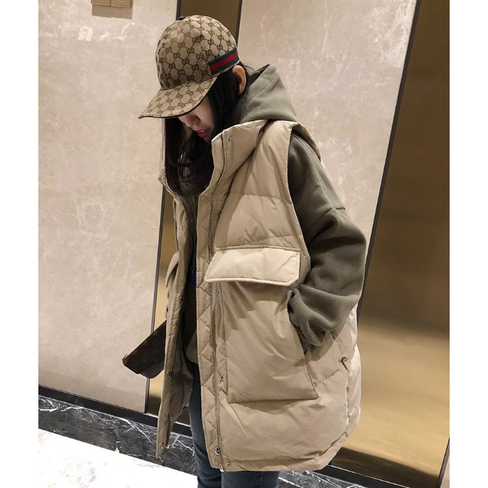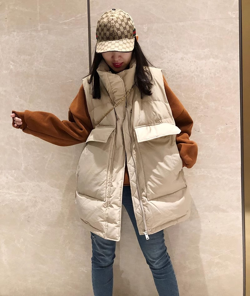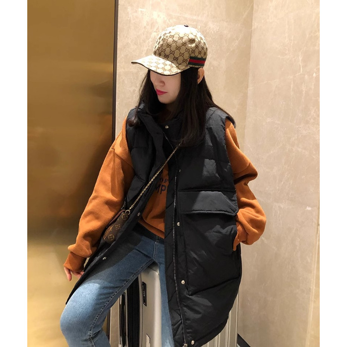 2025 새로운 가을, 겨울 한국 스타일 대형 중간 길이 다운 코튼 조끼 여성 조끼 느슨한 다목적 조끼 재킷 유행스토어 가기