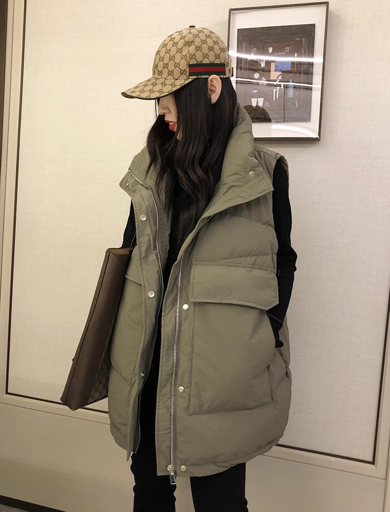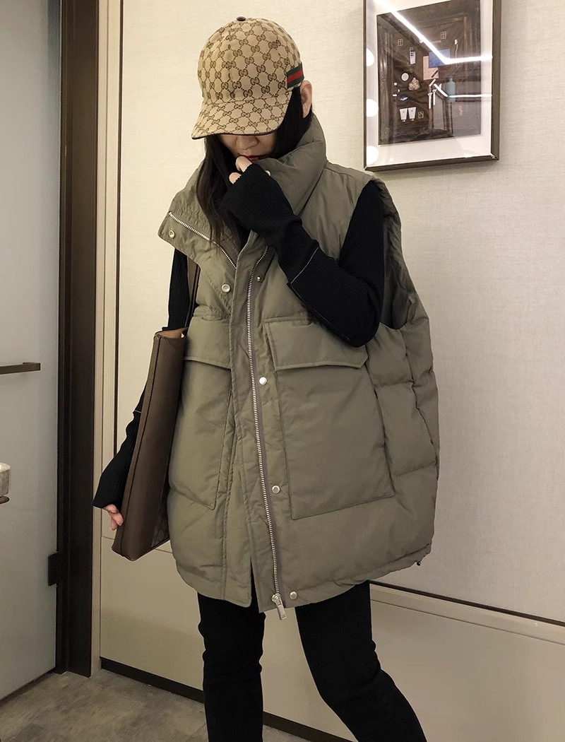 2025 새로운 가을, 겨울 한국 스타일 대형 중간 길이 다운 코튼 조끼 여성 조끼 느슨한 다목적 조끼 재킷 유행