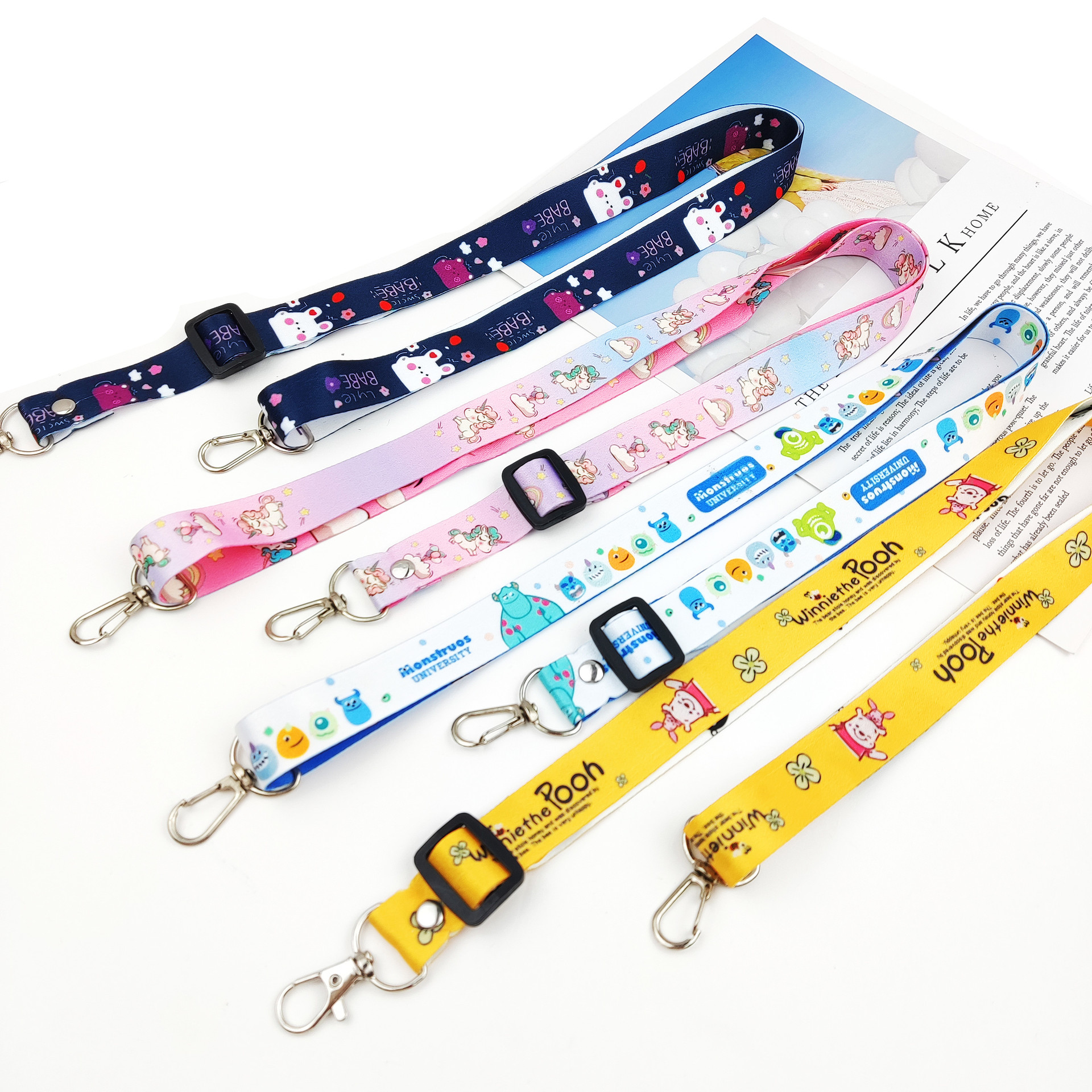 길이 조절 가능한 가방, 카메라용 더블 후크, 크로스바디 휴대폰 끈, 열전사 만화 캐릭터 크로스바디 물병 홀더, 목걸이형