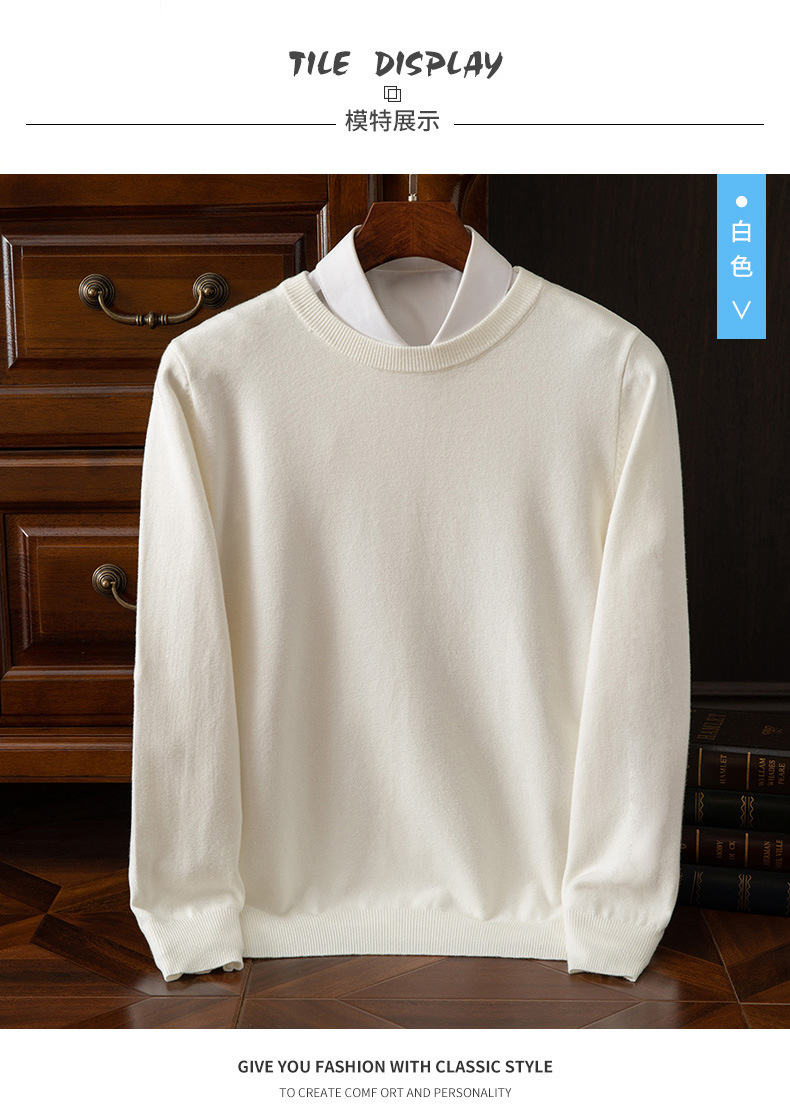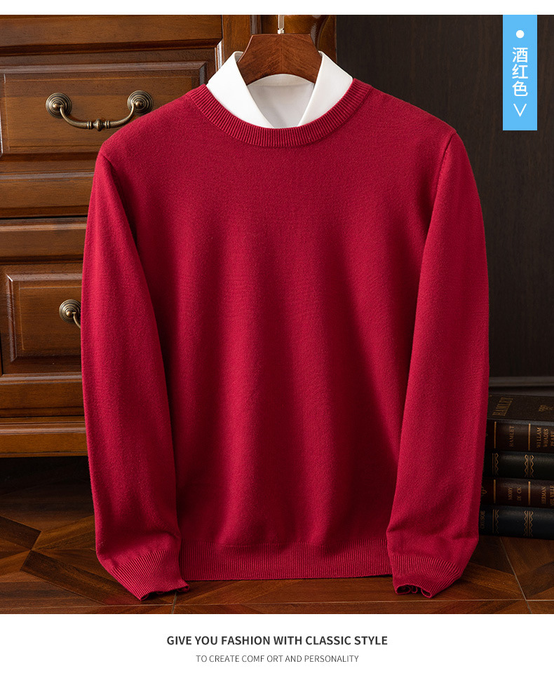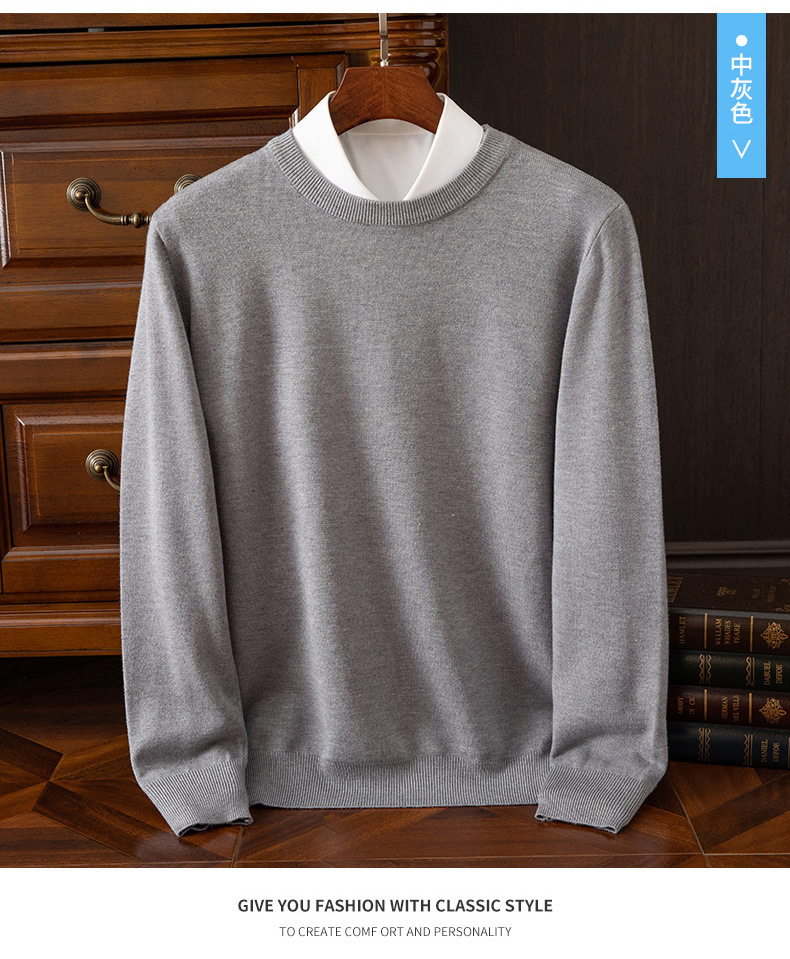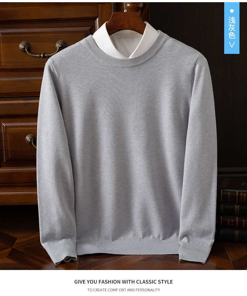 23 가을 겨울 울 스웨터 남성용 라운드넥 스웨터 따뜻한 캐주얼 니트 베이스 셔츠 대형 사이즈 비즈니스 신사 캐주얼 다용도
