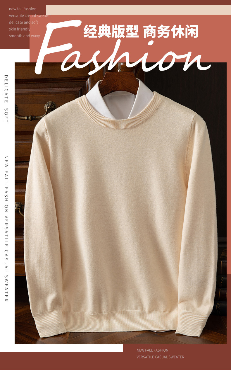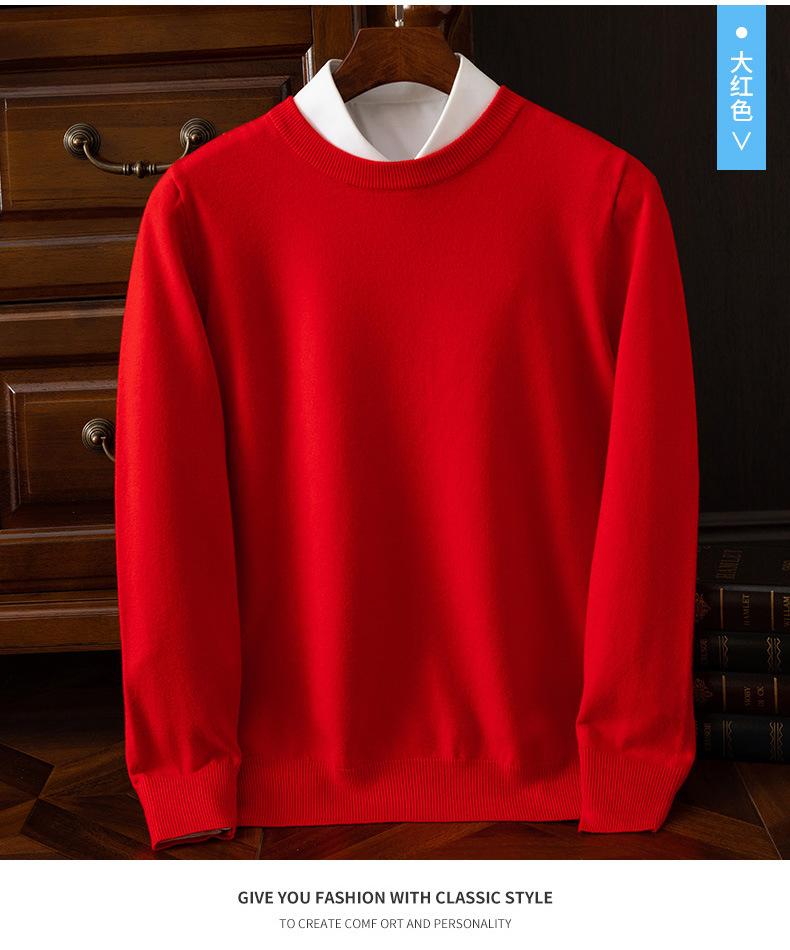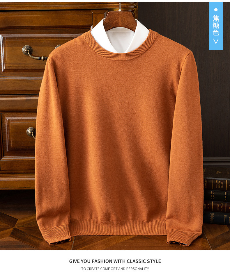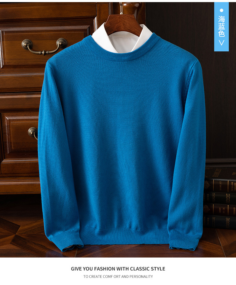 23 가을 겨울 울 스웨터 남성용 라운드넥 스웨터 따뜻한 캐주얼 니트 베이스 셔츠 대형 사이즈 비즈니스 신사 캐주얼 다용도