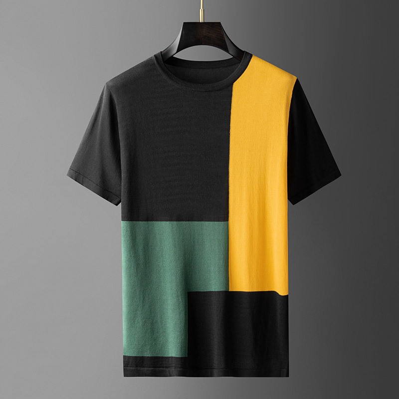 국경 2023 유럽과 미국 여름 새로운 캐주얼 남성 3D 효과 컬러 매칭 짧은 소매 패션 라운드 넥 남성 티셔츠