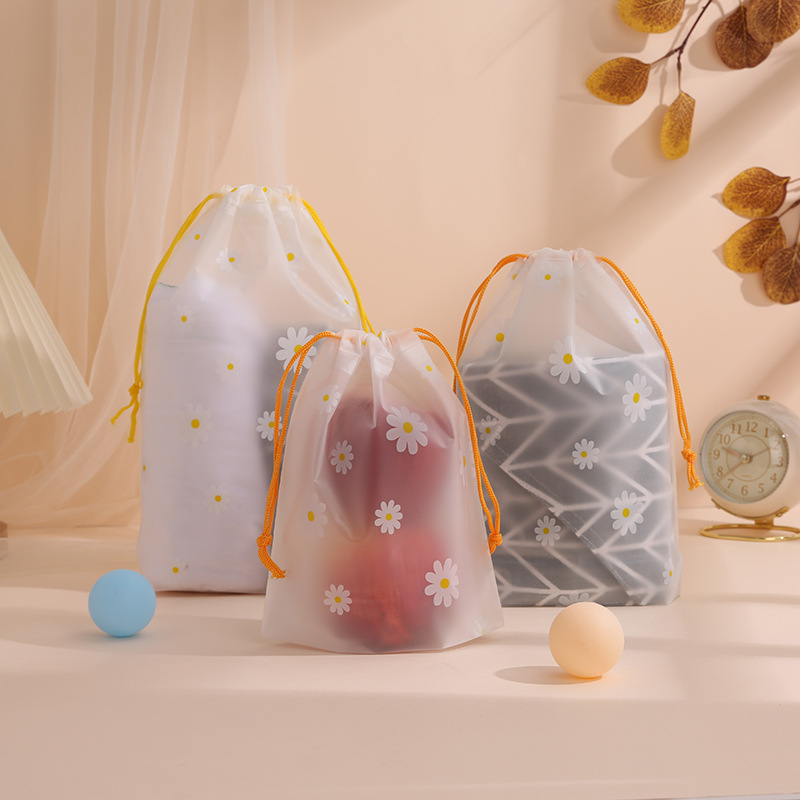 磨砂塑料包装袋pe小雏菊收纳袋束口袋洗脸巾服装束口包装抽绳袋子