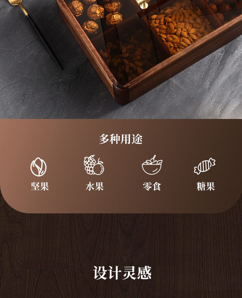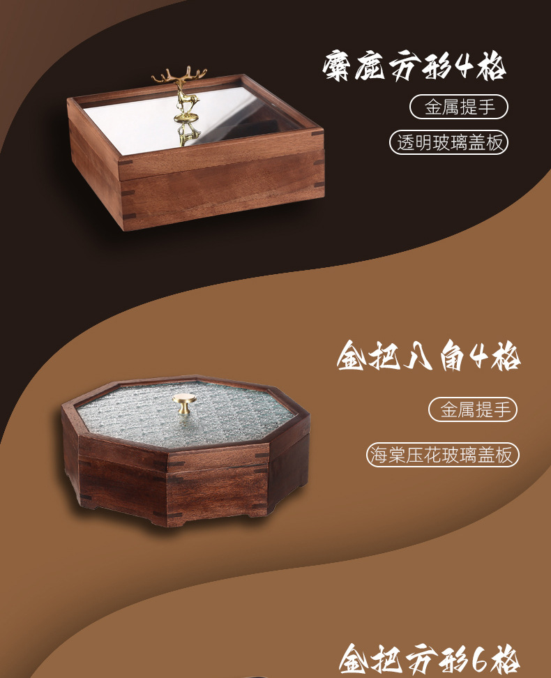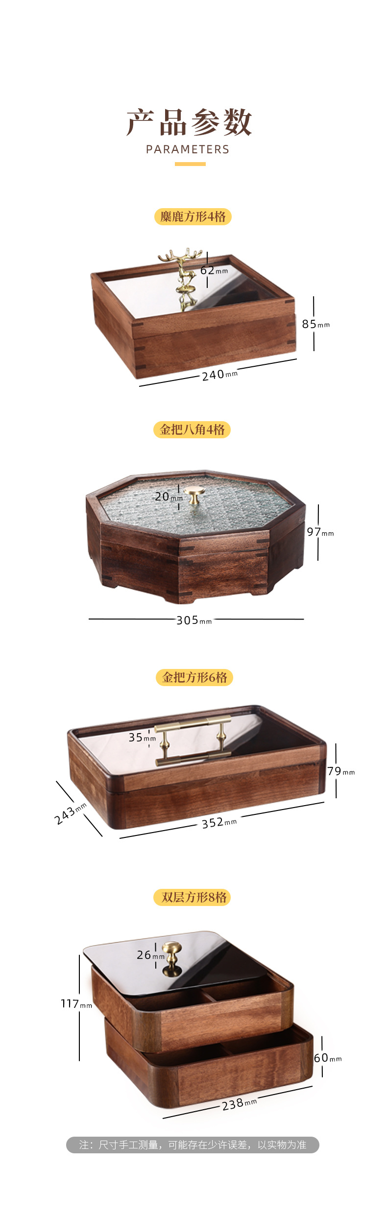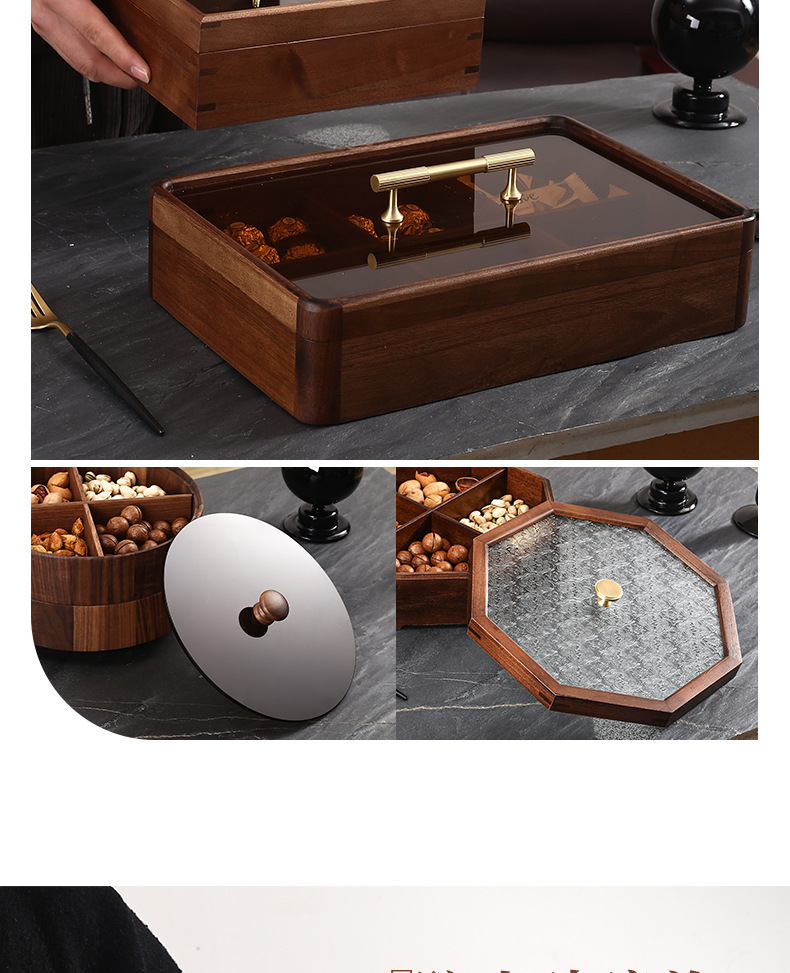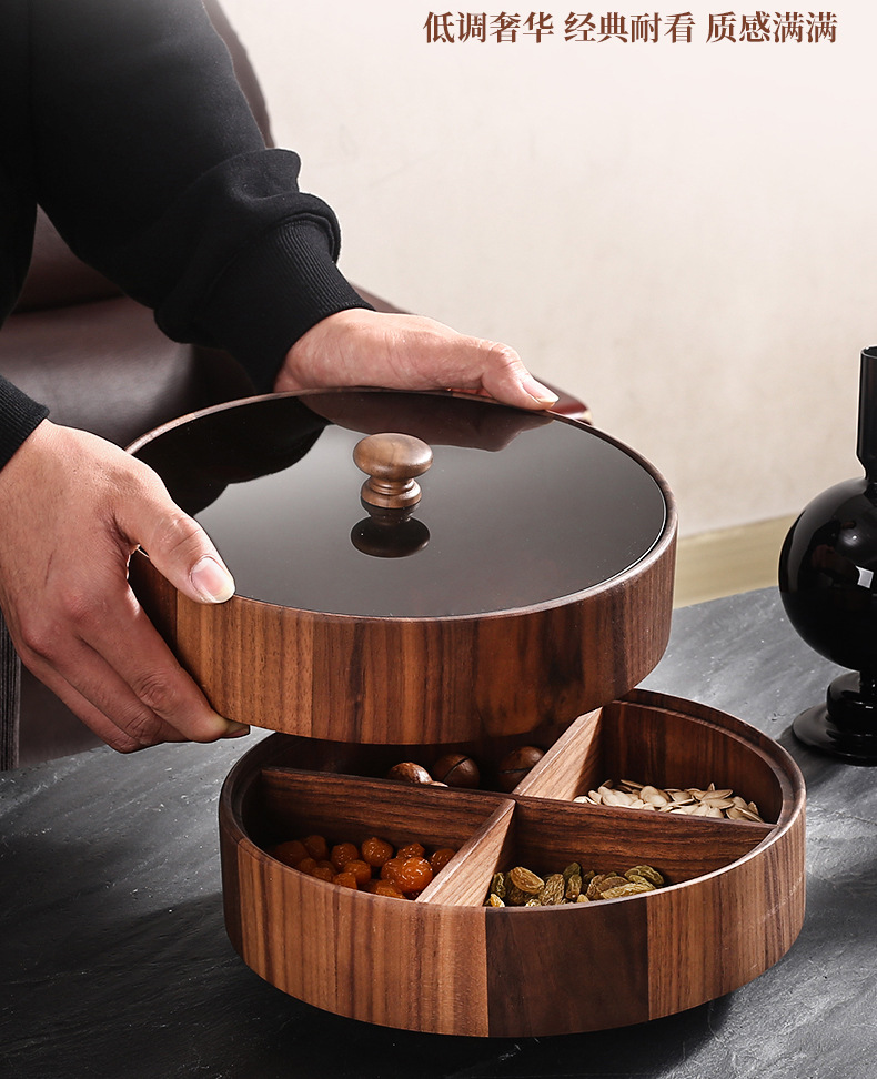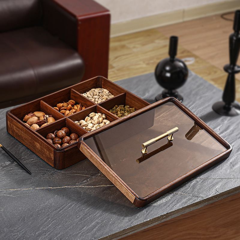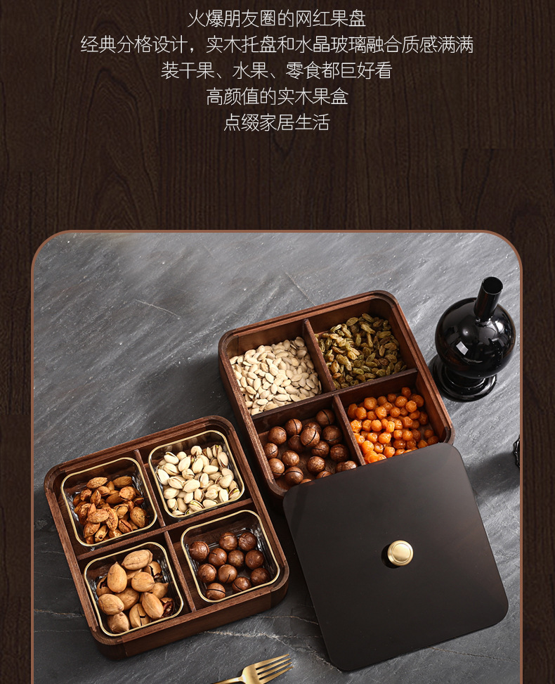 호두 분할 과일 플레이트 가정용 거실 커피 테이블 고급 단단한 나무 빛 고급 사탕 말린 과일 너트 저장 상자 유리