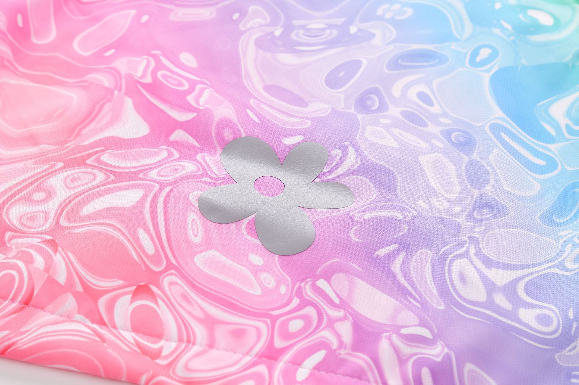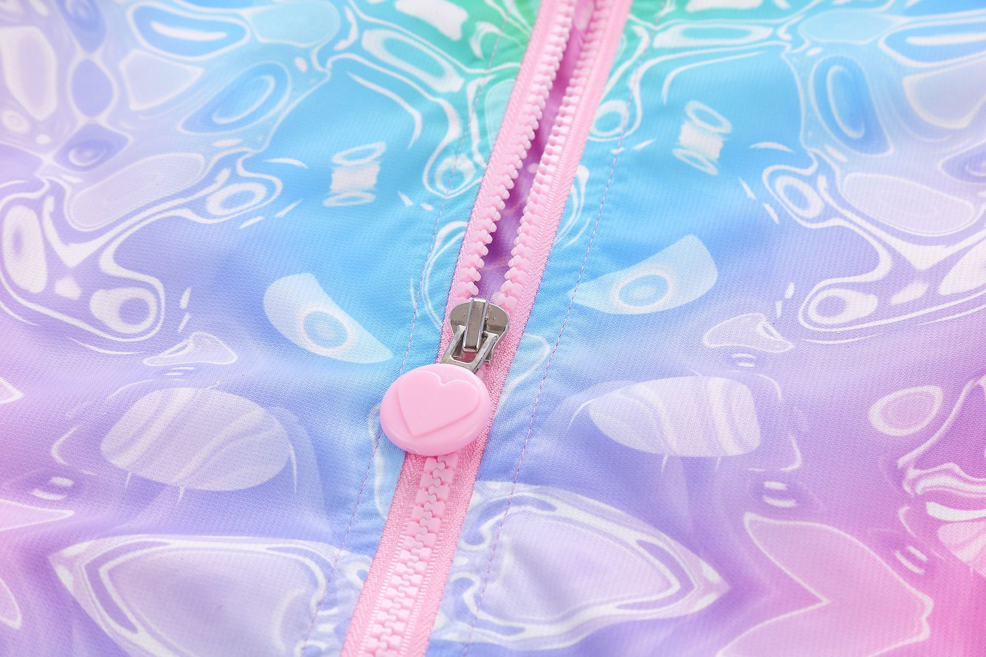 此款风衣很多细节配有安全闪光条,背面是的花朵反光标,袖子也是有反光标。帽子有反光绳。在夜晚非常闪亮,为宝宝夜晚出行安全护航