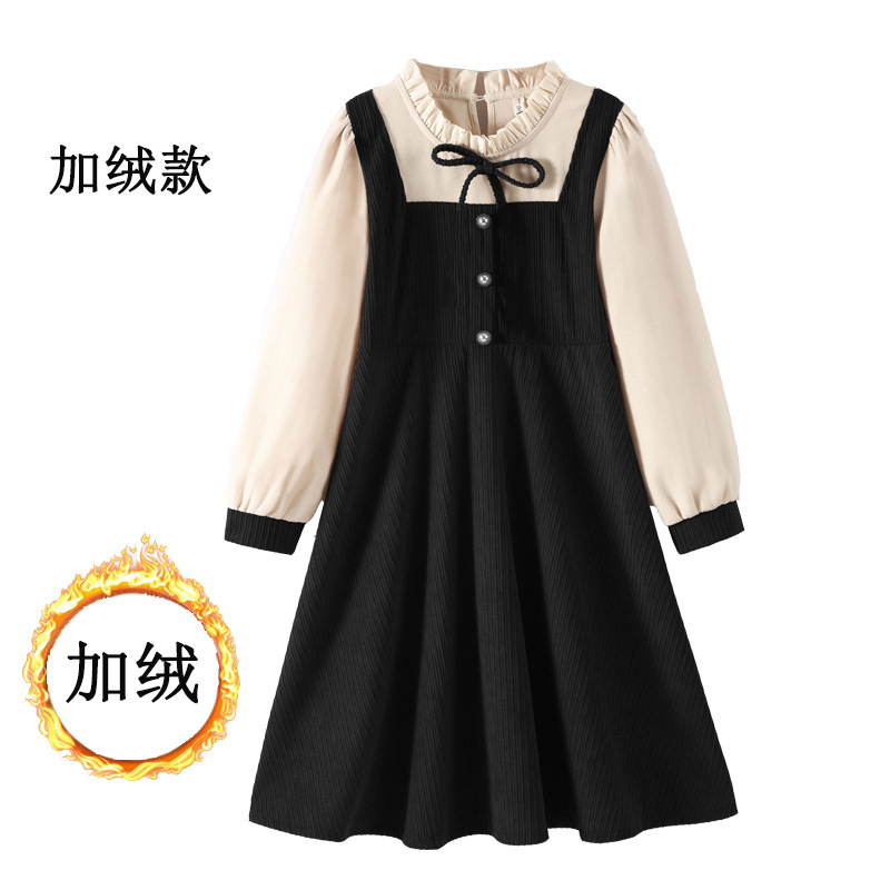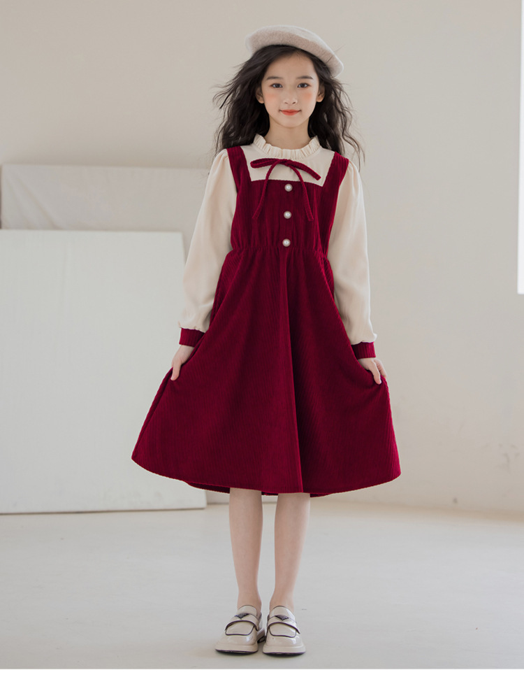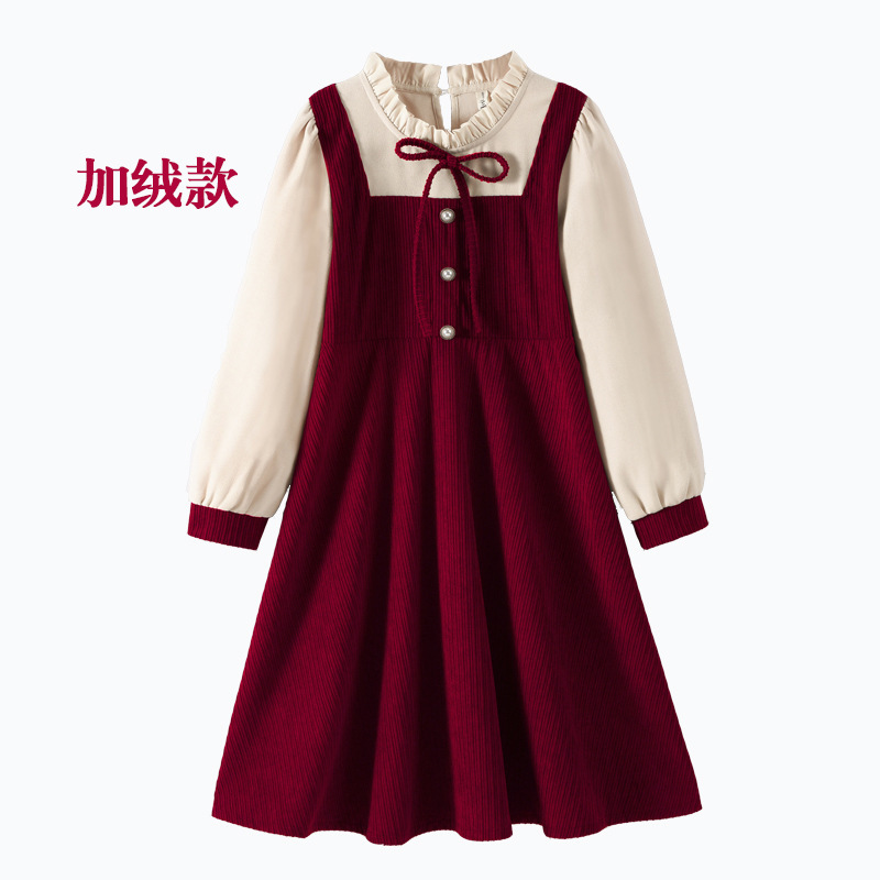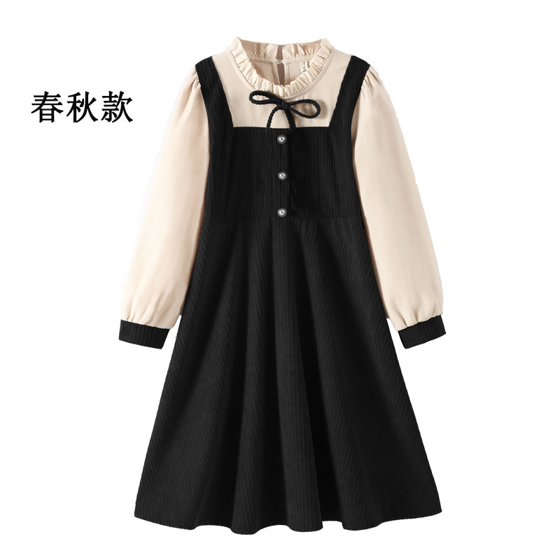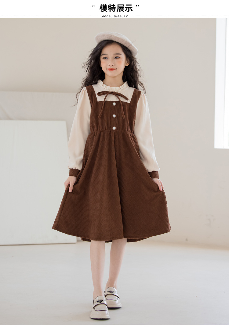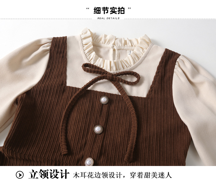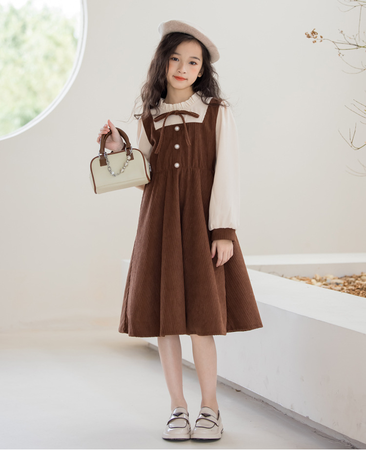 여아 원피스 투피스 스타일 2025 가을 달콤한 학생복 코듀로이 공주 드레스 큰 아이들 배색 레트로 드레스스토어 가기