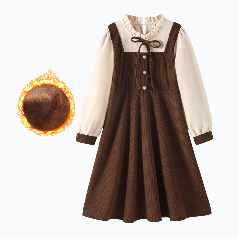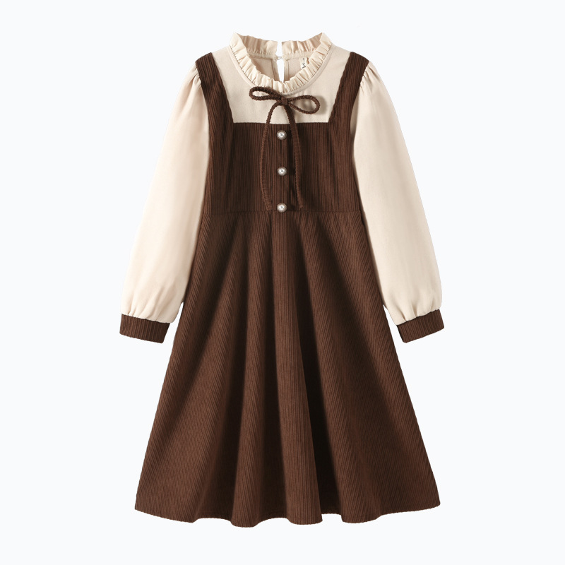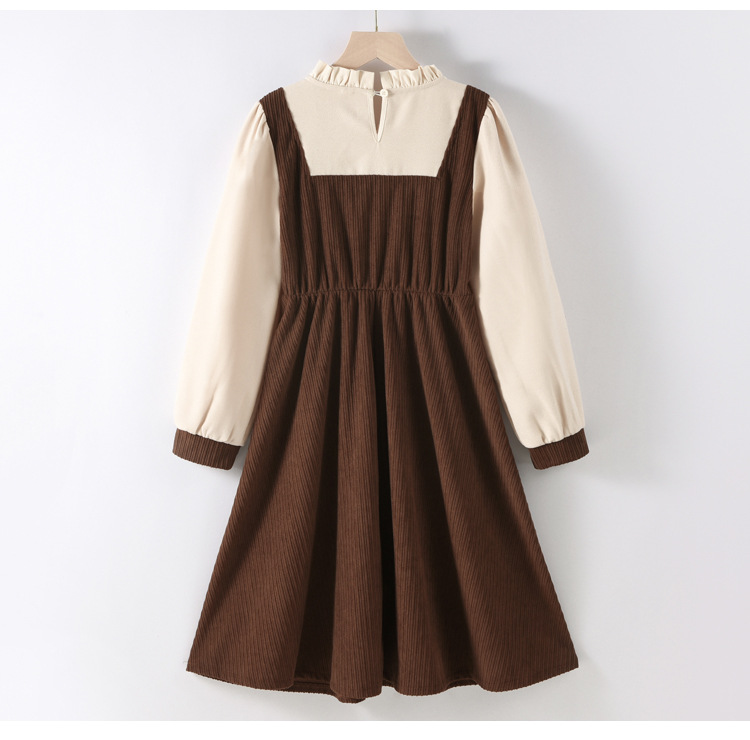 여아 원피스 투피스 스타일 2025 가을 달콤한 학생복 코듀로이 공주 드레스 큰 아이들 배색 레트로 드레스