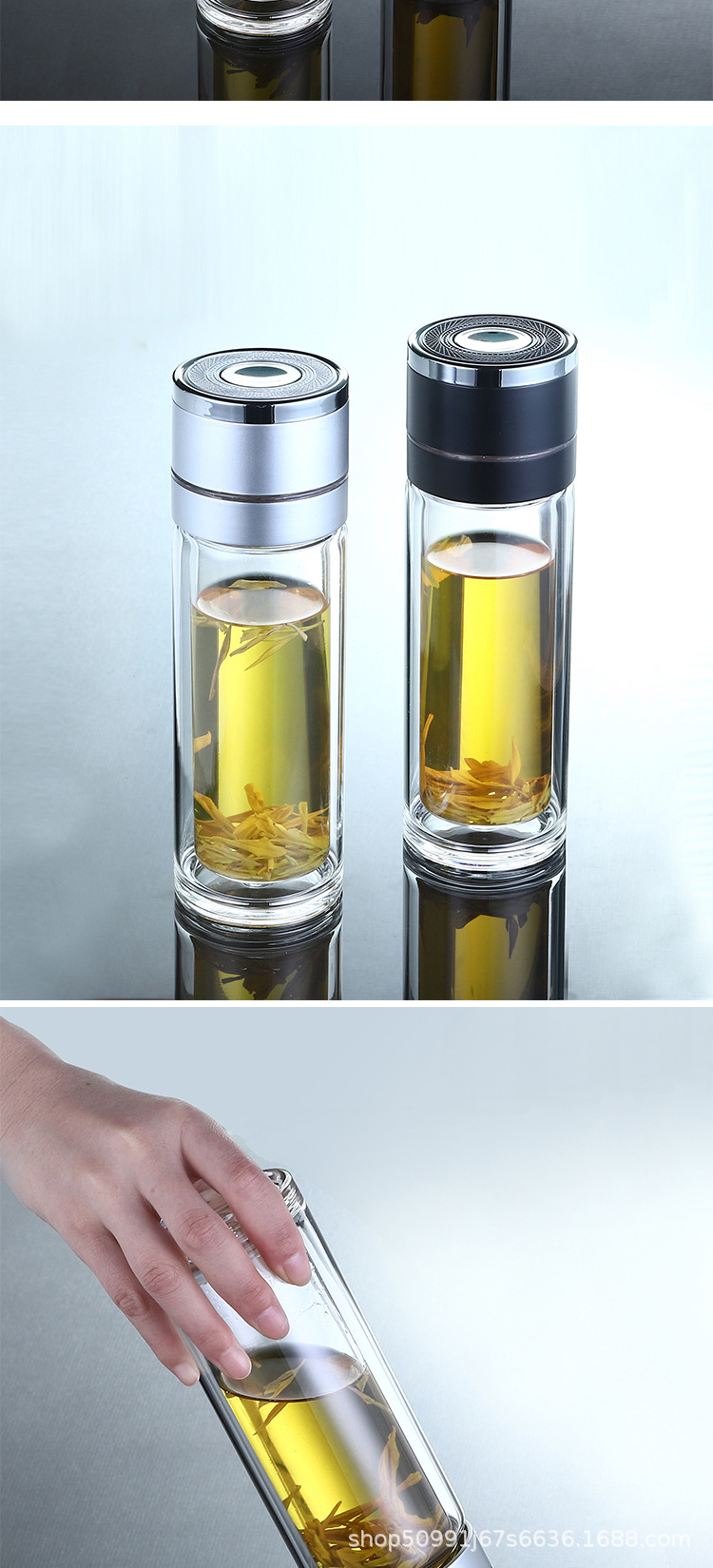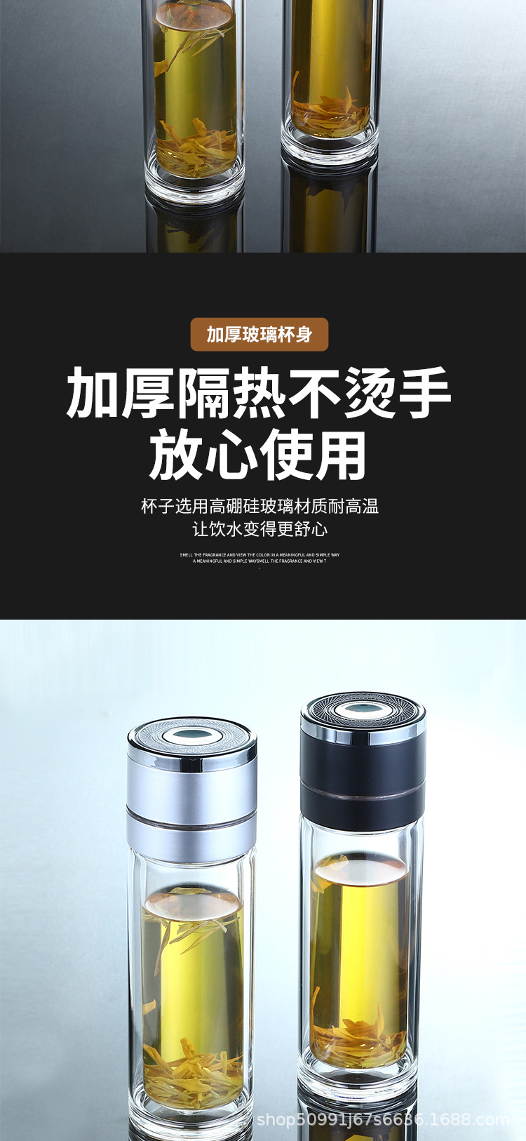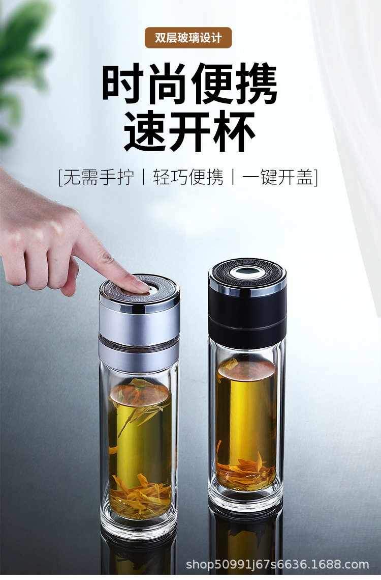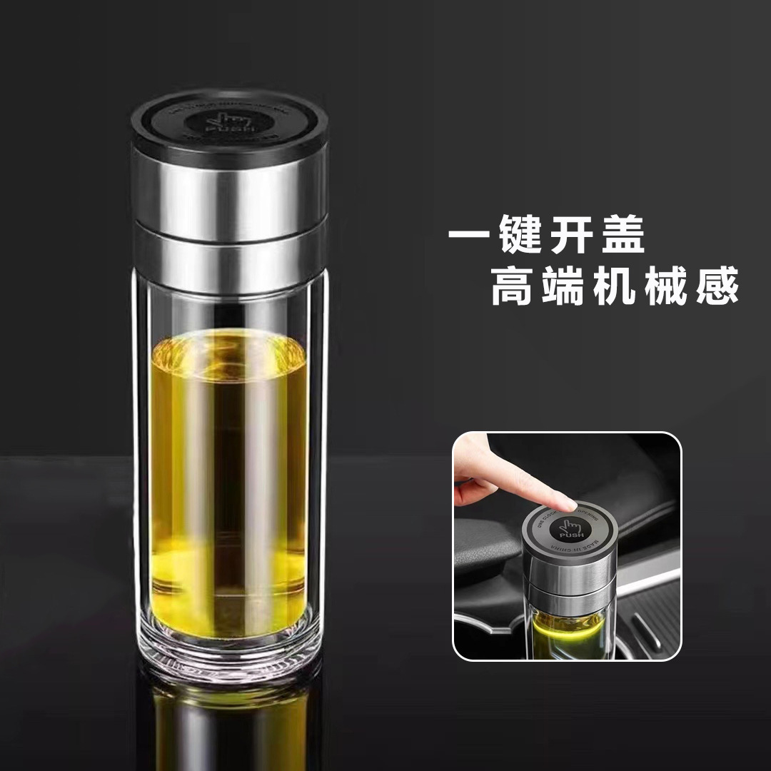 네트 레드 퀵 오픈 컵 카 더블 레이어 고 붕규산 원 버튼 프레스 오픈 뚜껑 유리 차-물 분리 컵 차 만들기 컵