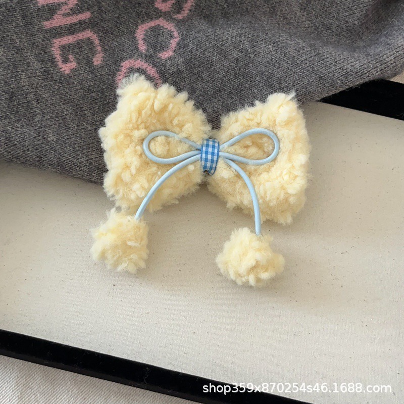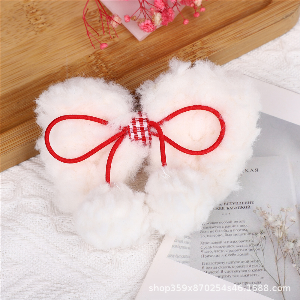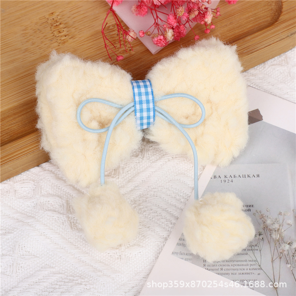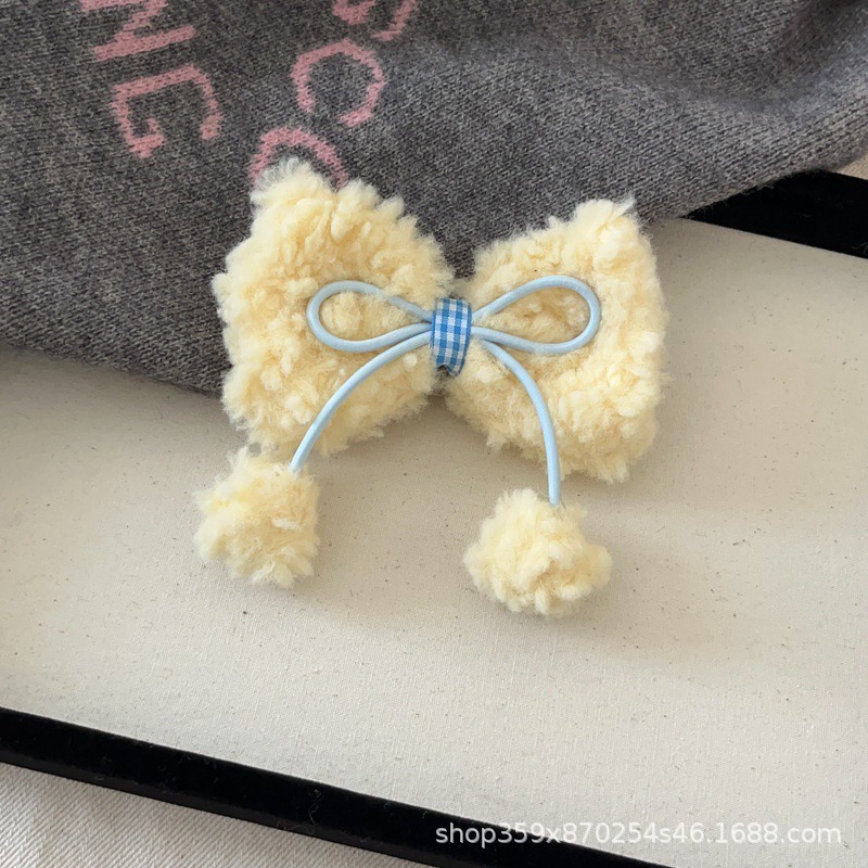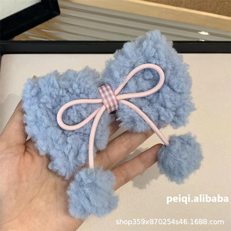 크림 양고기 머리 활 공 머리핀 귀여운 소녀의 심장 봉제 대비 색상 오리 빌 클립 달콤한 머리핀스토어 가기