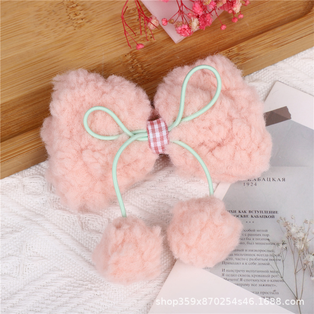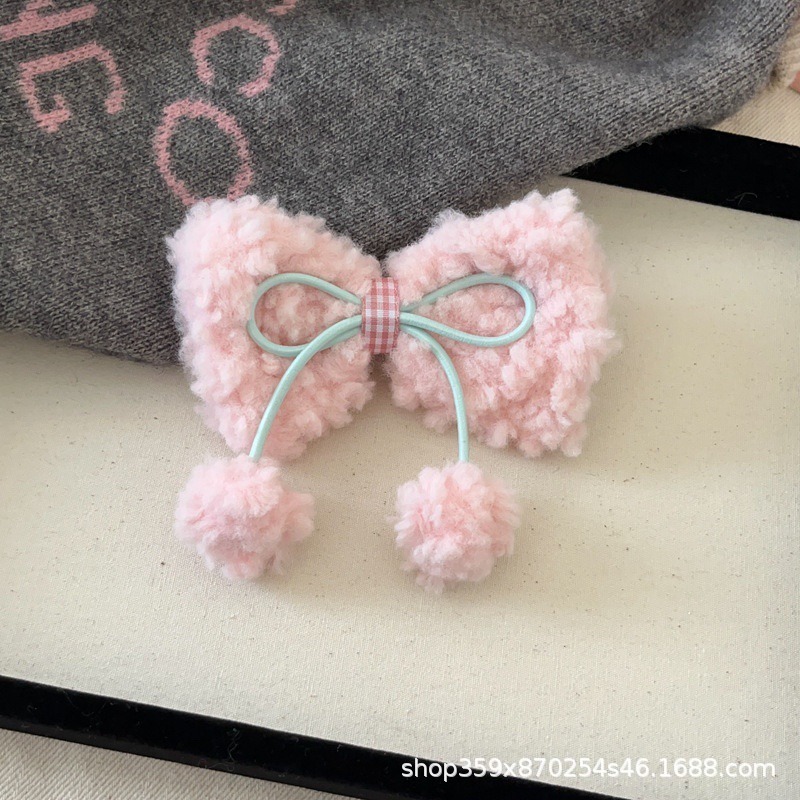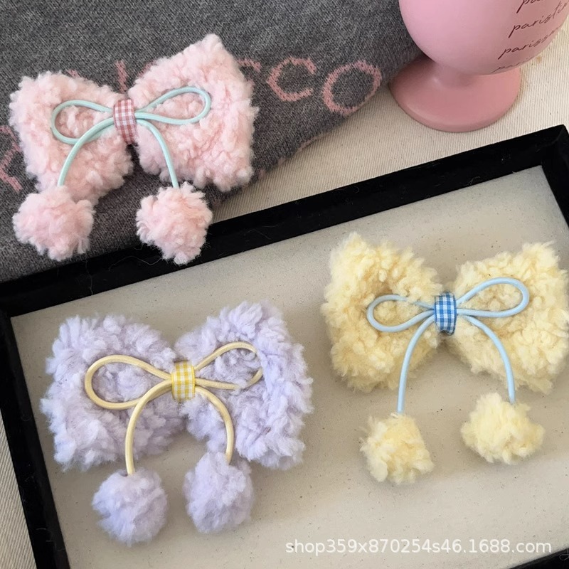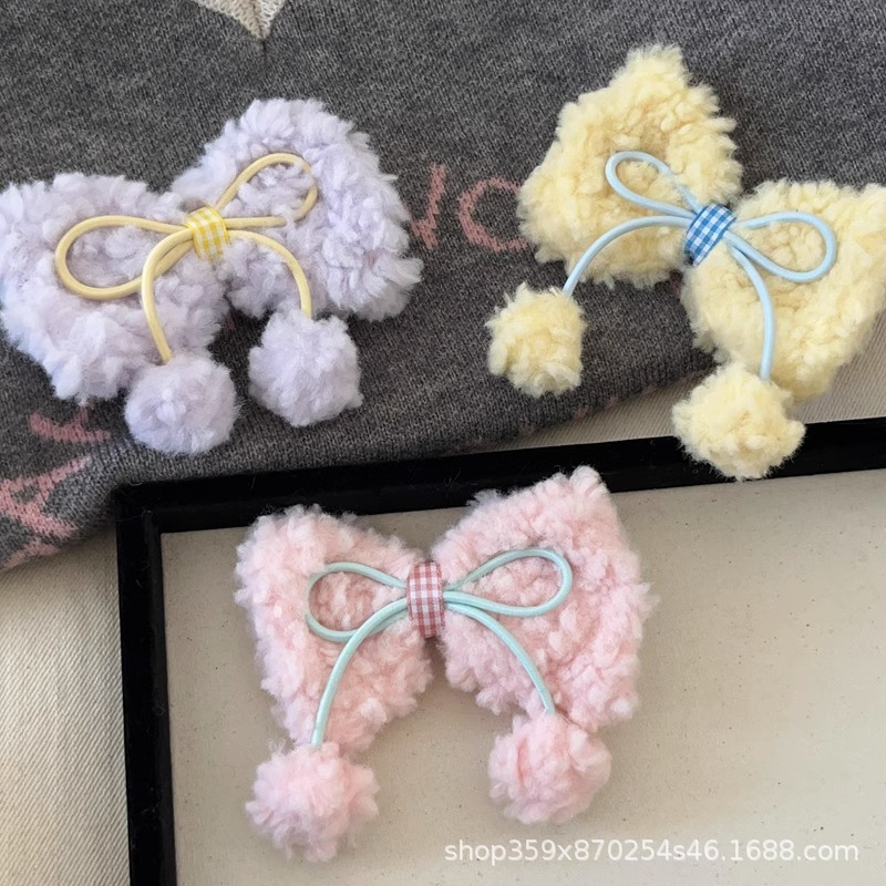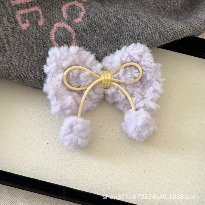 크림 양고기 머리 활 공 머리핀 귀여운 소녀의 심장 봉제 대비 색상 오리 빌 클립 달콤한 머리핀스토어 가기