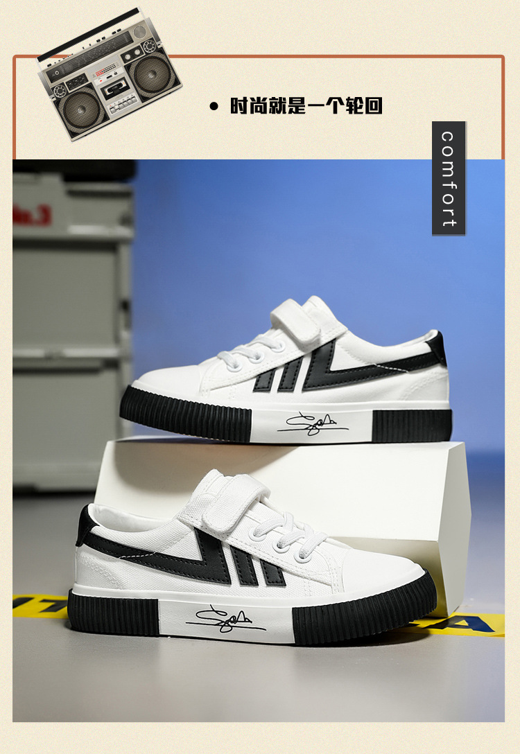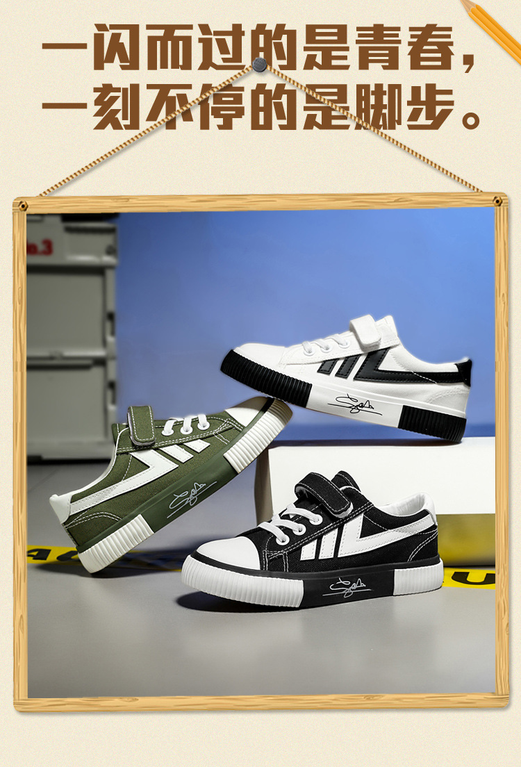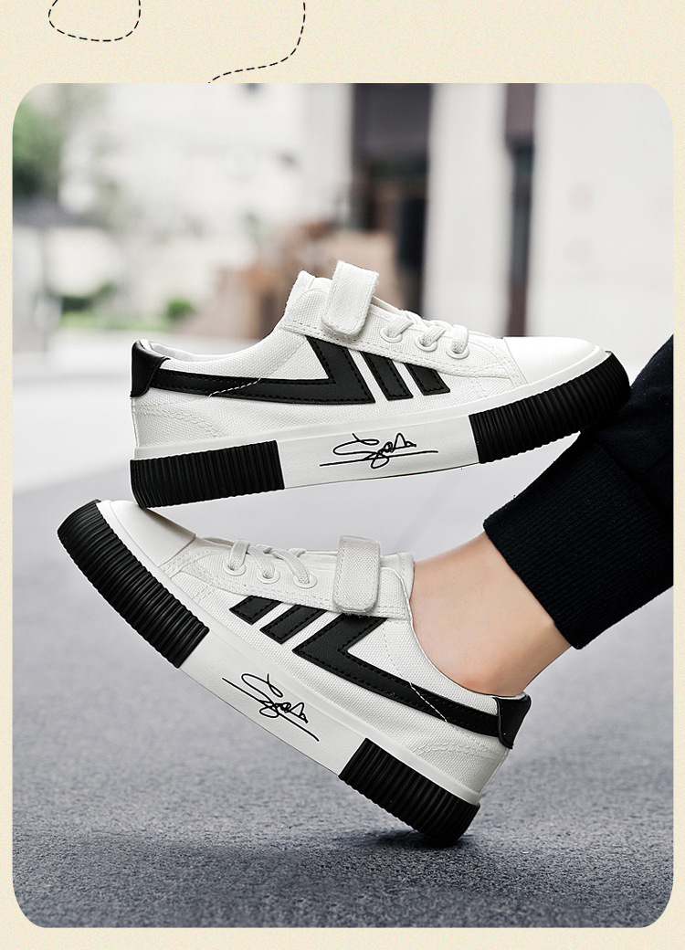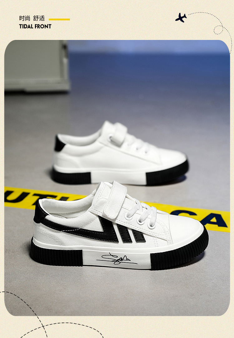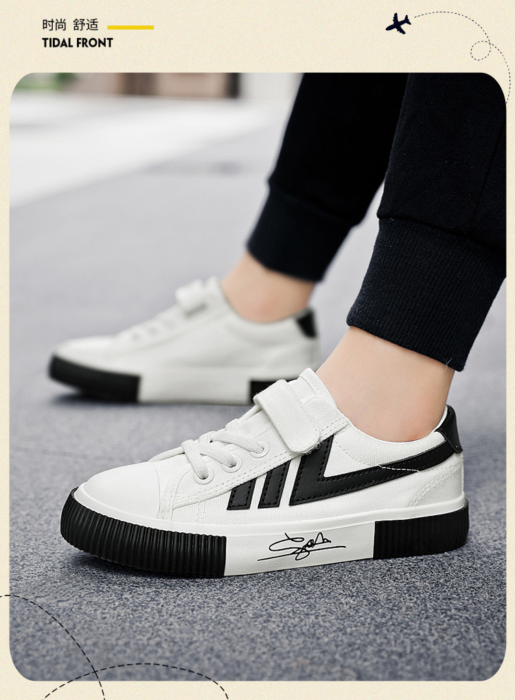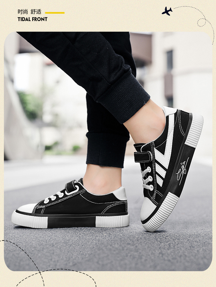 2023 봄과 가을 새로운 어린이 운동화 소년의 벨크로 보드 신발 캐주얼 유행 신발 통기성 캔버스 신발스토어 가기