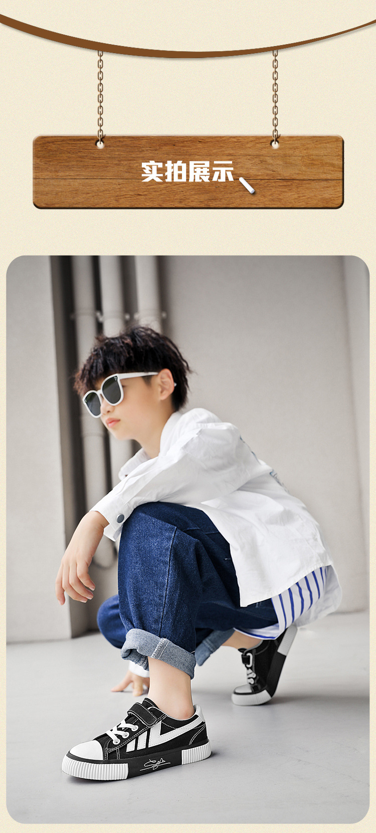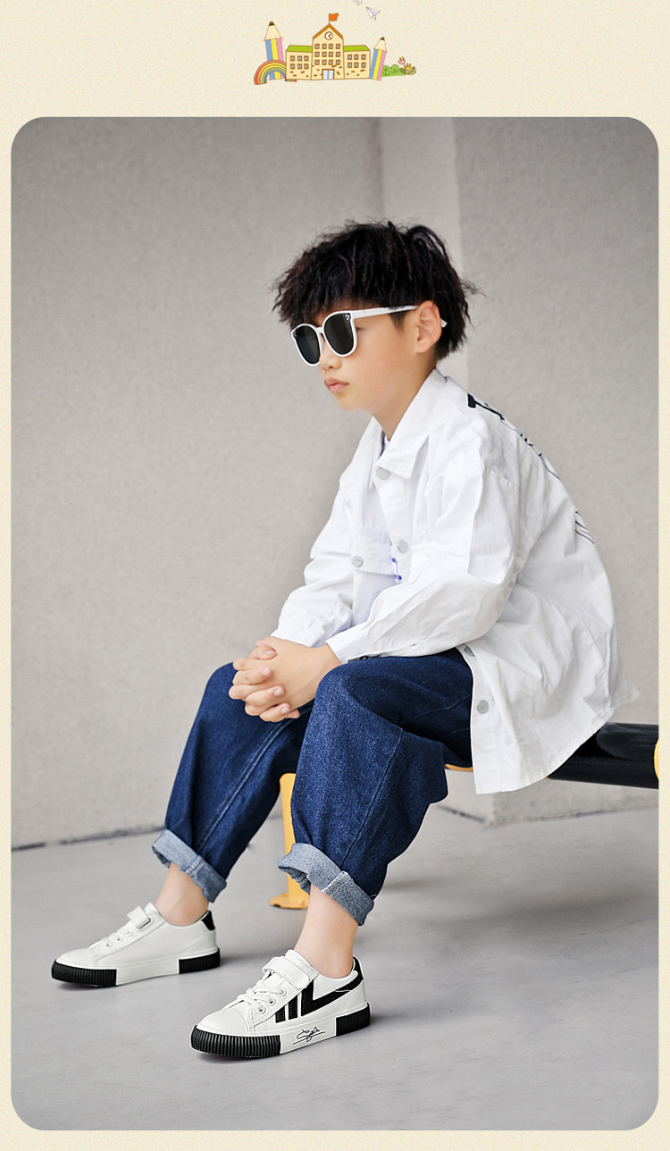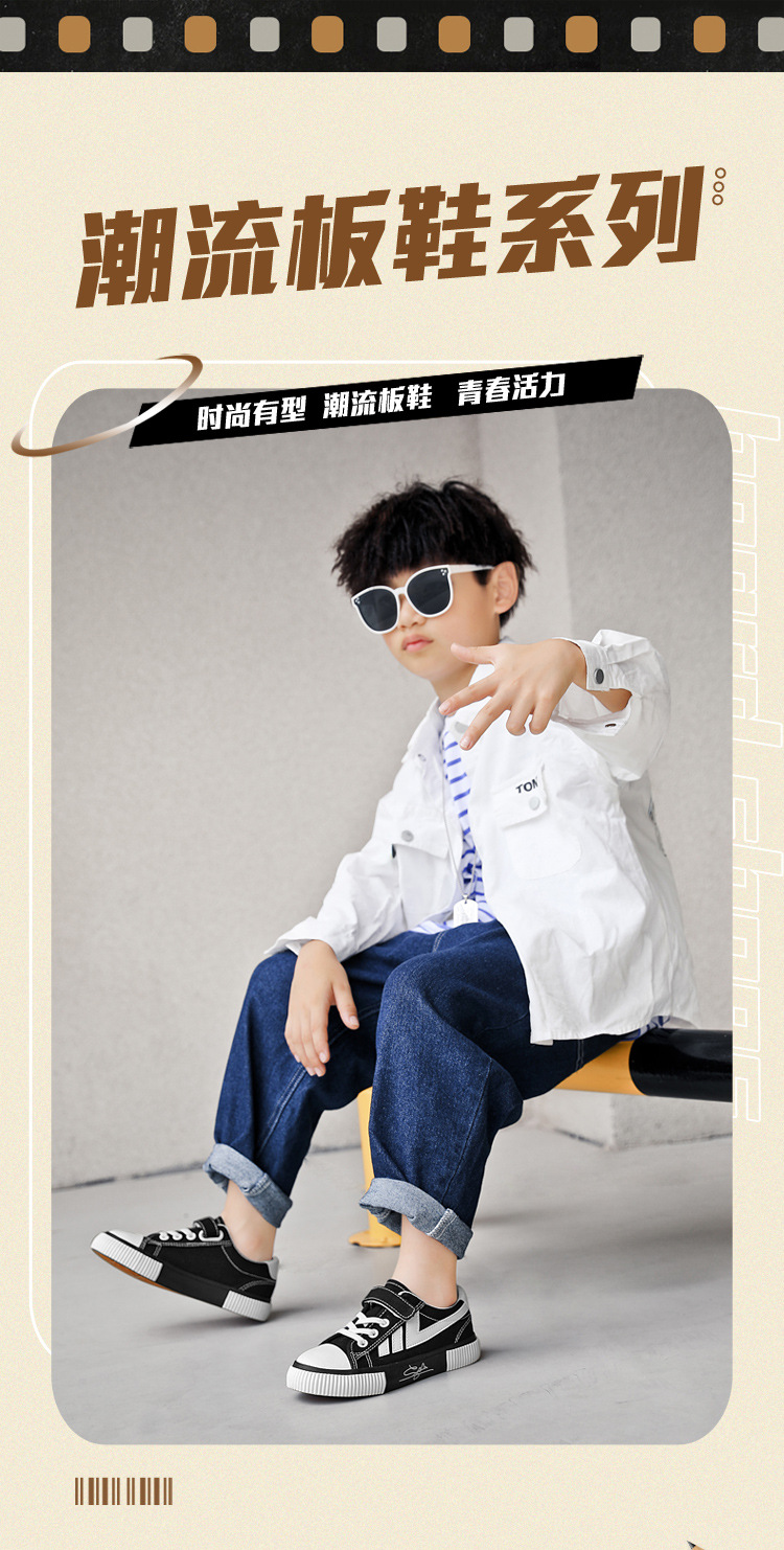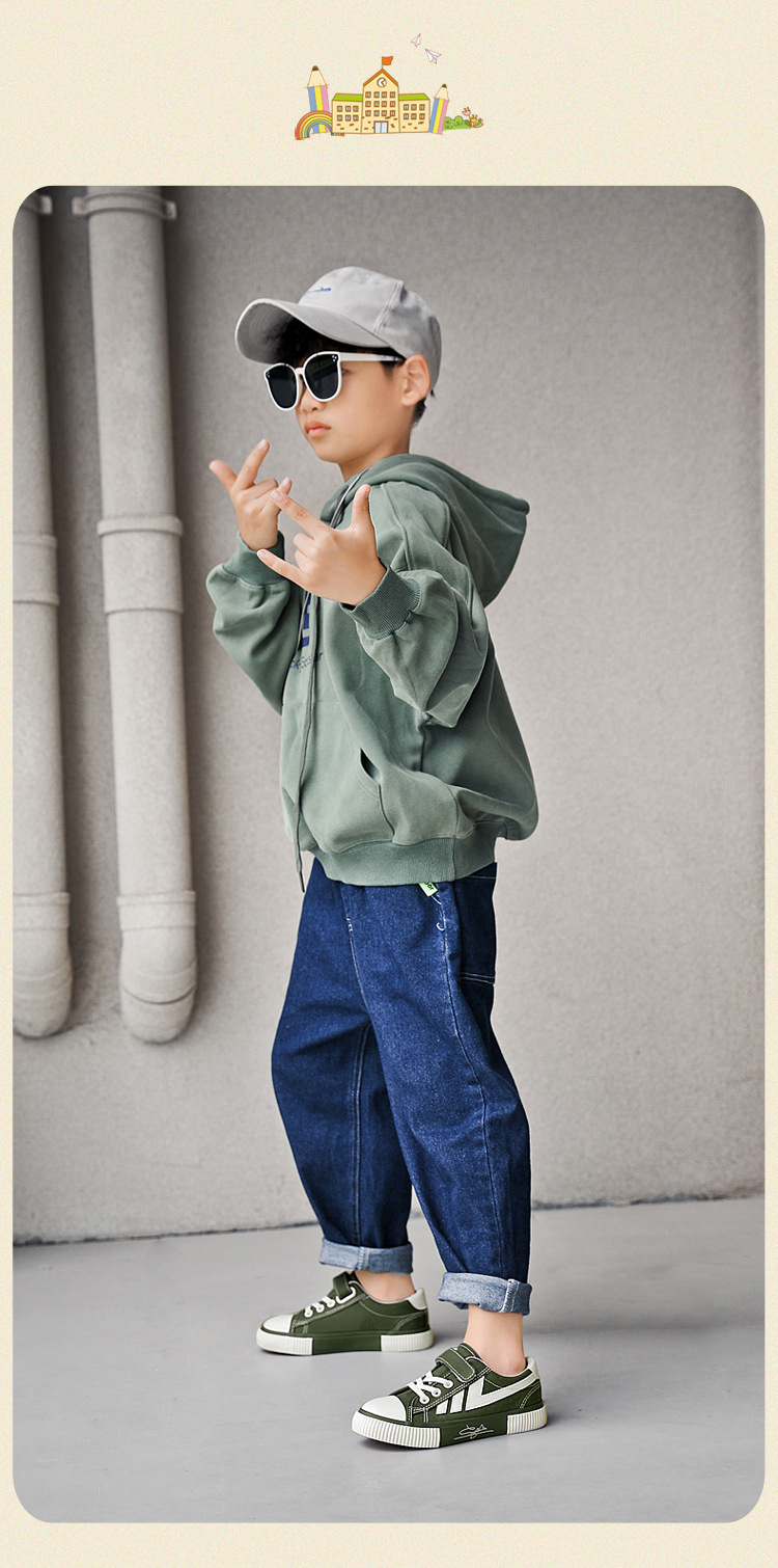 2023 봄과 가을 새로운 어린이 운동화 소년의 벨크로 보드 신발 캐주얼 유행 신발 통기성 캔버스 신발스토어 가기