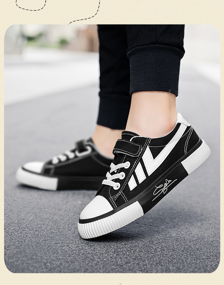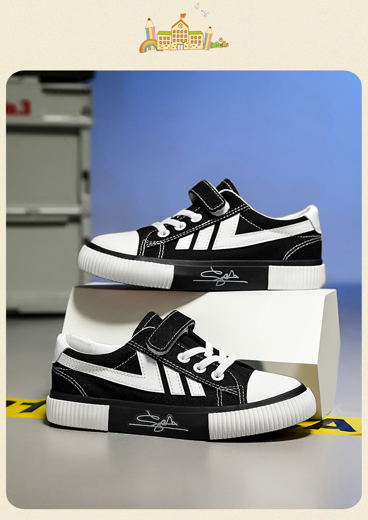 2023 봄과 가을 새로운 어린이 운동화 소년의 벨크로 보드 신발 캐주얼 유행 신발 통기성 캔버스 신발