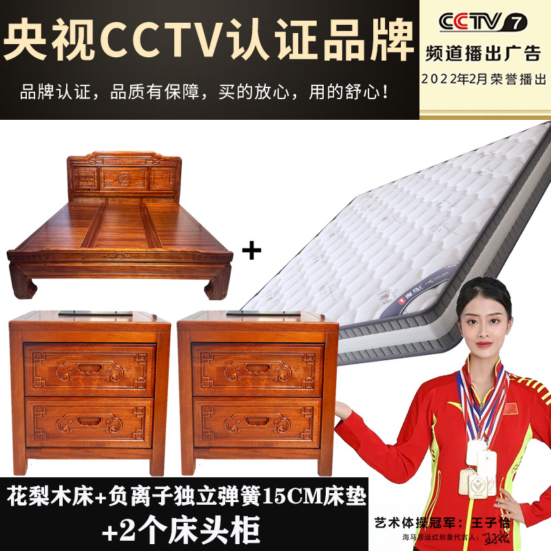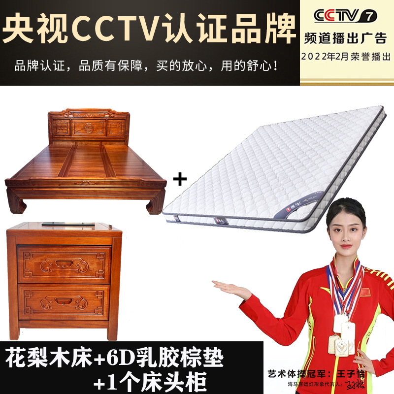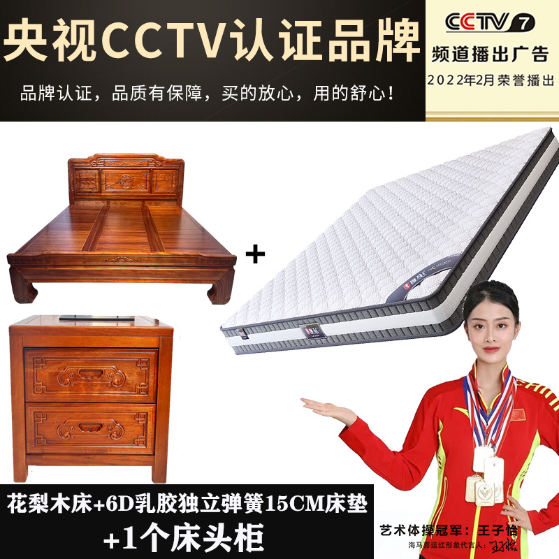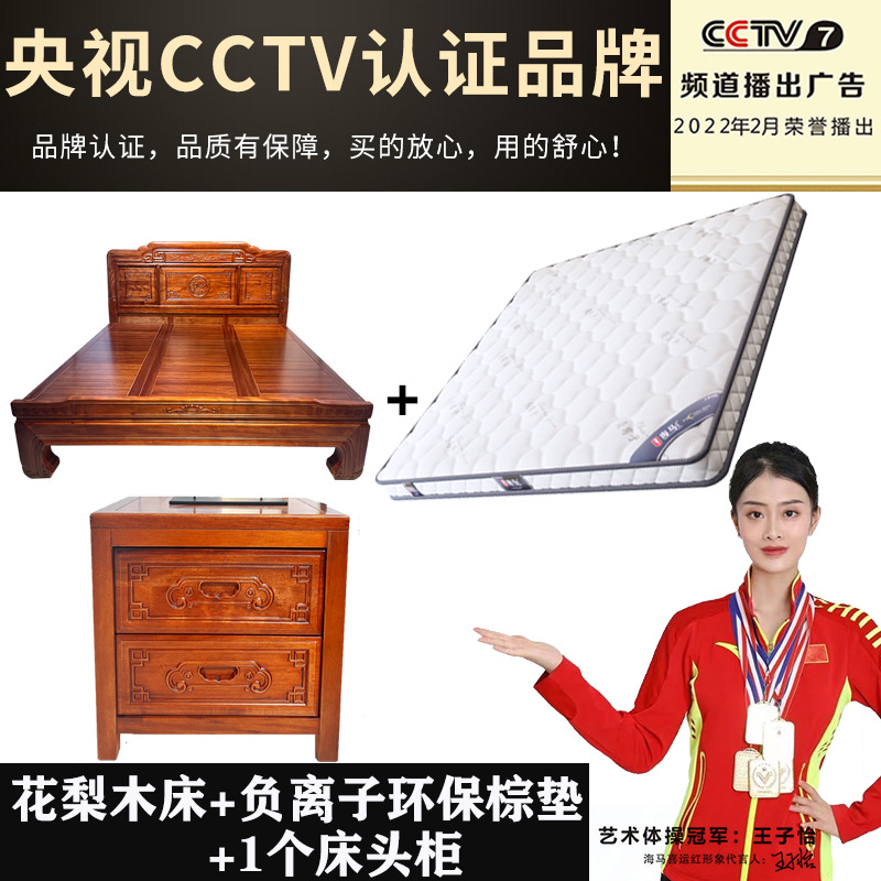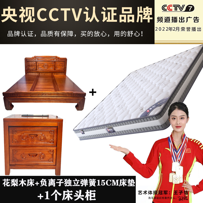 • 로즈 우드 침대 + 음이온 환경 보호 다크 브라운 매트 + 1 캐비닛