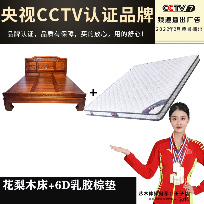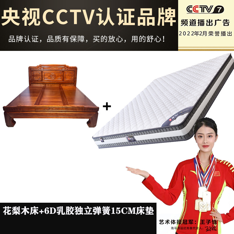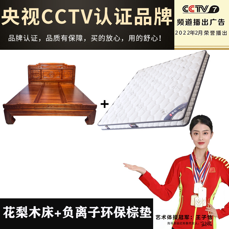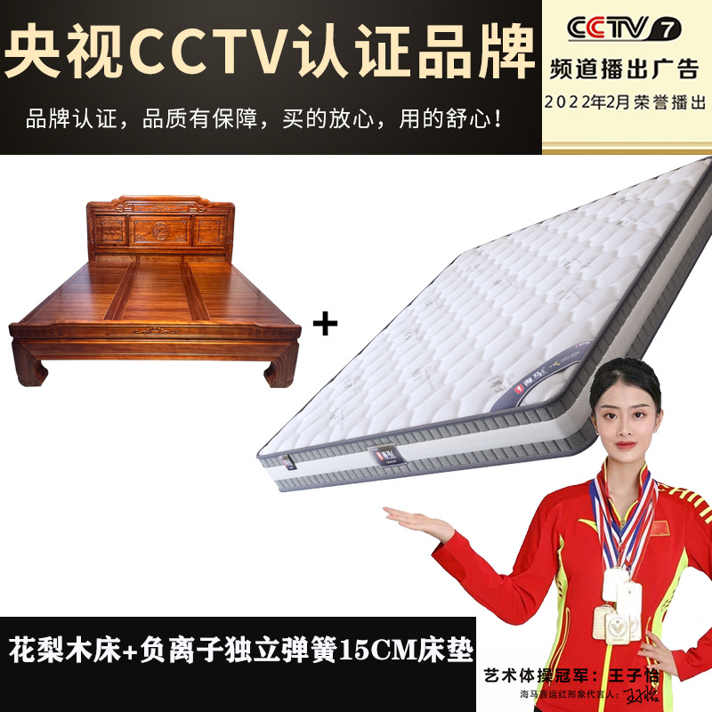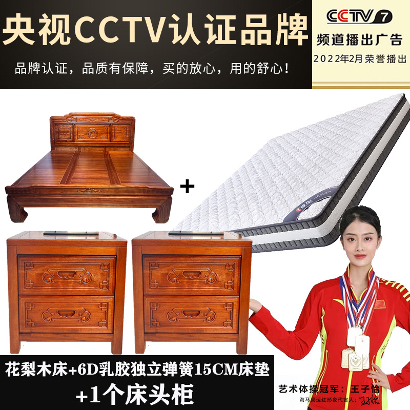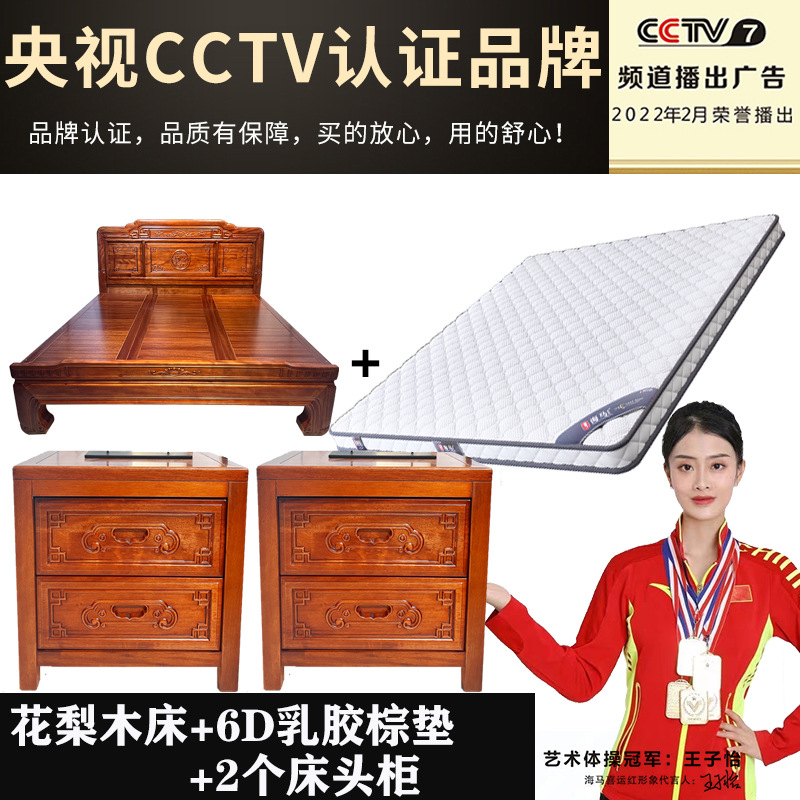 • 로즈 우드 침대 + 음이온 환경 보호 다크 브라운 매트 + 1 캐비닛