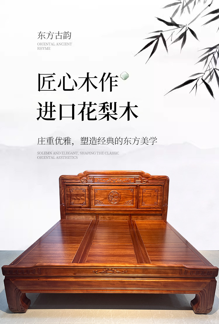 花梨木实木床榫卯工艺仿古红木中式雕花双人主卧婚床古典实木床