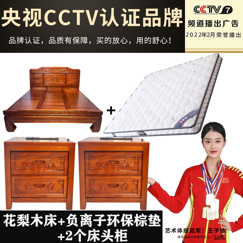 • 로즈 우드 침대 + 음이온 환경 보호 다크 브라운 매트 + 2 캐비닛