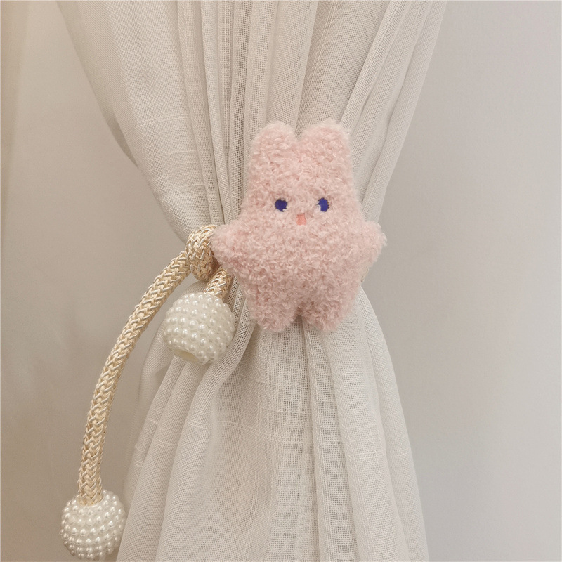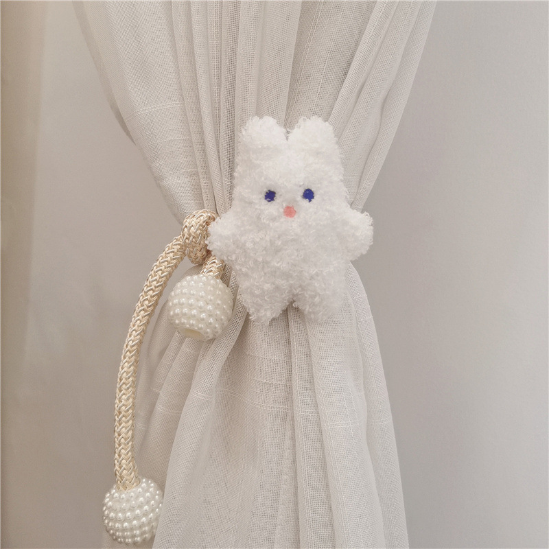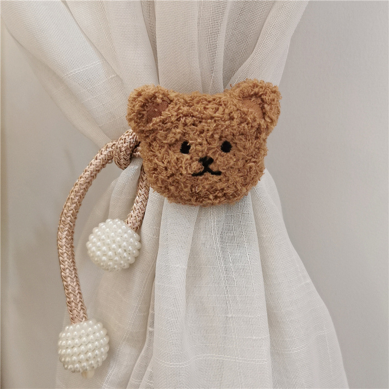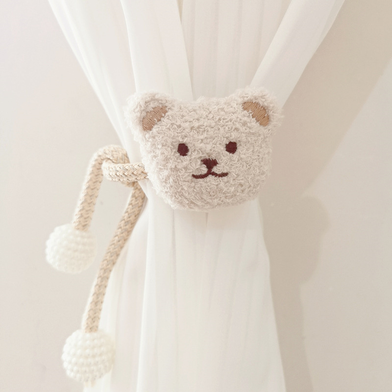 韩版ins风 刺绣立体小熊头珠珠卡扣窗帘绑带