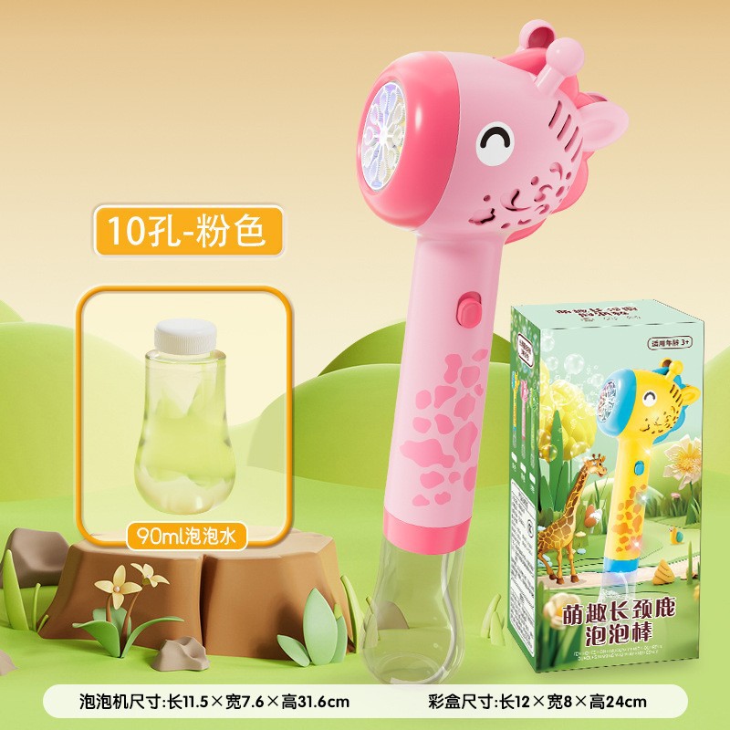 • 10 홀 기린 버블 스틱 "컬러 박스" 핑크