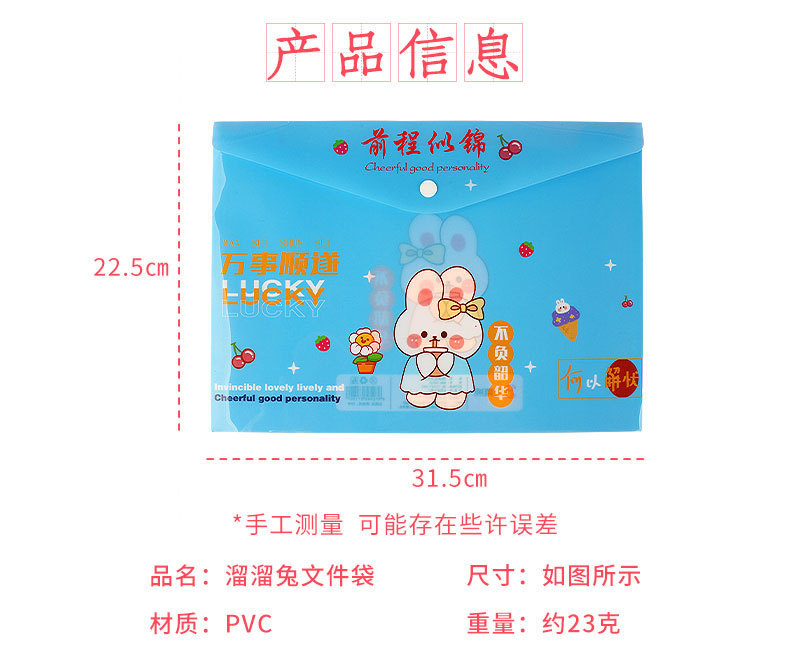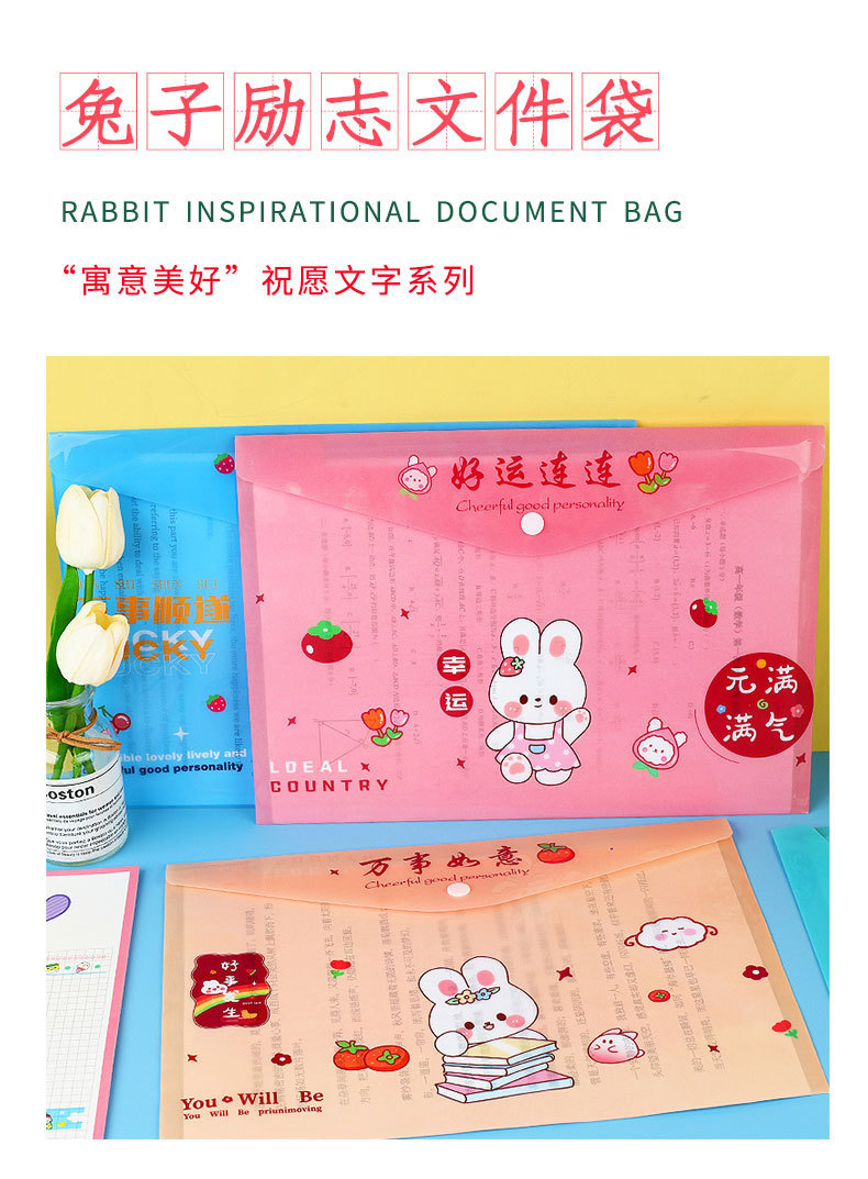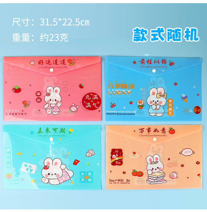 A4 영감 텍스트 파일 가방 학생 스냅 백 만화 토끼 테스트 종이 파일 저장 가방 방수 파일 가방스토어 가기