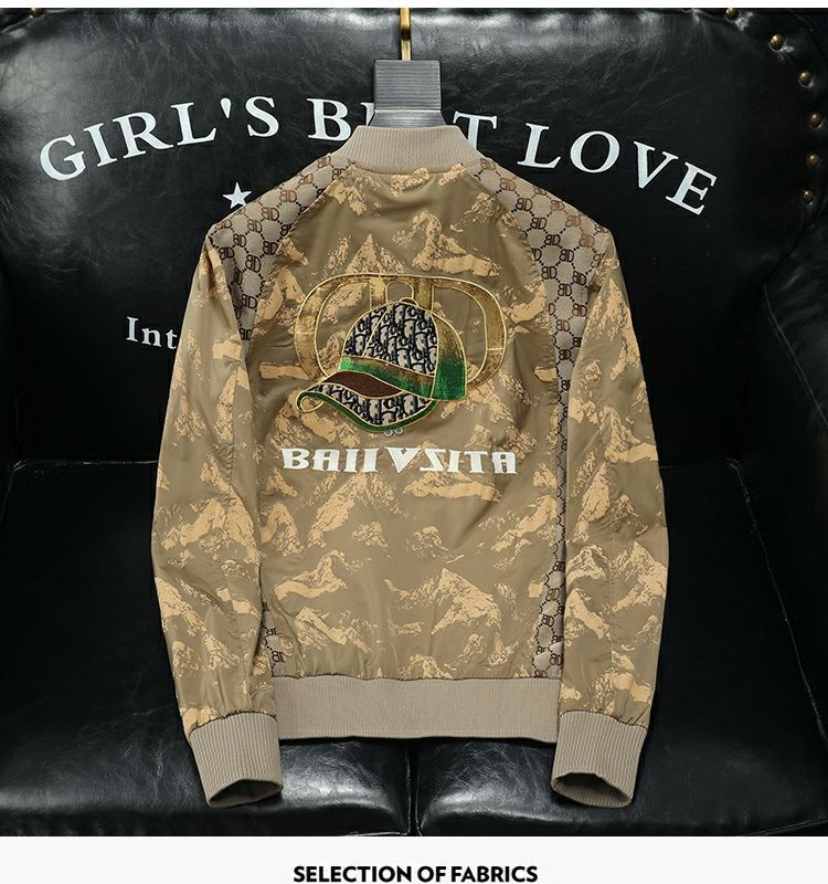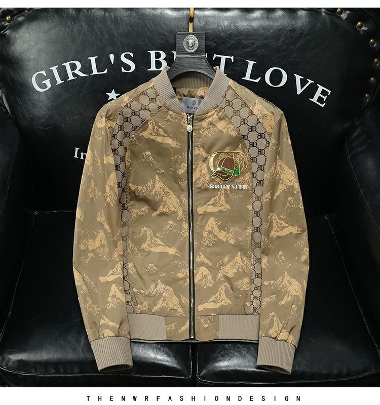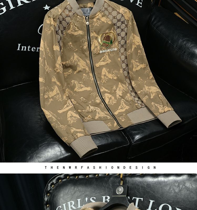 유럽 2023 가을 새로운 스타일 야구 칼라 재킷 남성용 트렌디 한 패션 자수 라이트 럭셔리 고급 캐주얼 재킷
