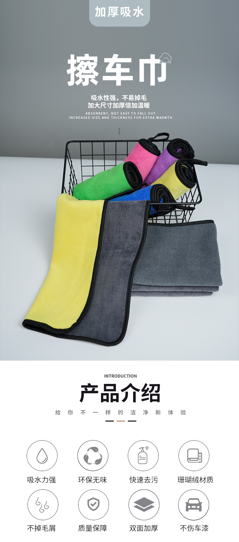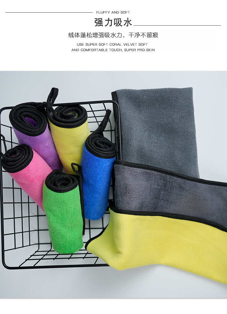 국경 간 세차 수건 도매 양면 속건성 자동차 수건 확대 및 두꺼운 산호 벨벳 흡수성 세차 수건 로고스토어 가기