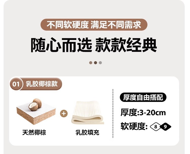 • 맞춤형 3cm 코코넛 야자 + 2cm 라텍스