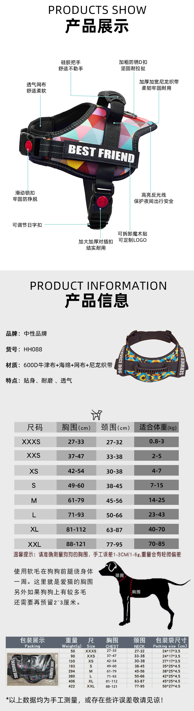크로스 보더 개 가슴 스트랩 벨크로 야간 반사 애완 동물 용품 큰 개 칼라 견인 로프 조끼 의류스토어 가기