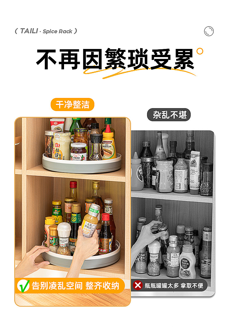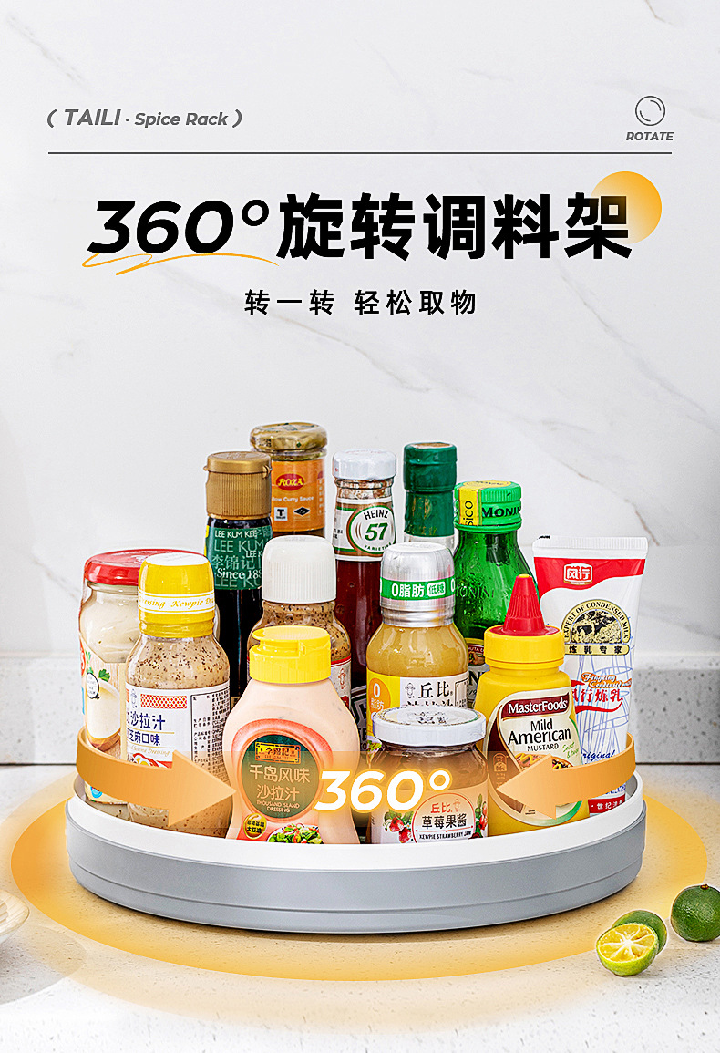 꼬리 회전 조미료 선반 주방 데스크탑 간장병 보관 접시 360 도 조리대 미끄럼 방지 화장품 보관
