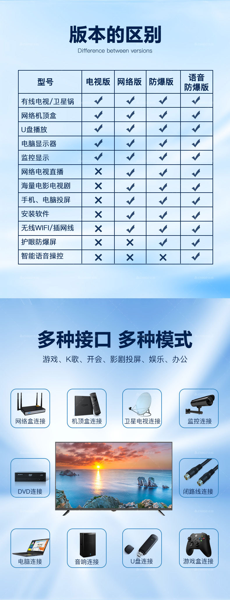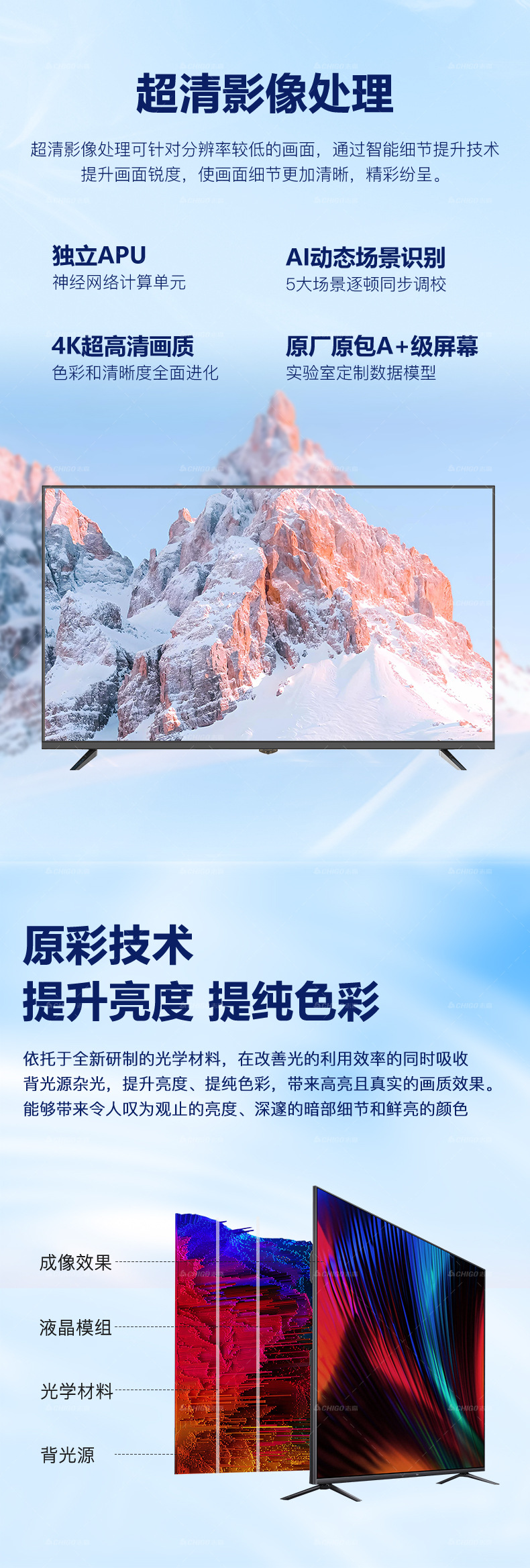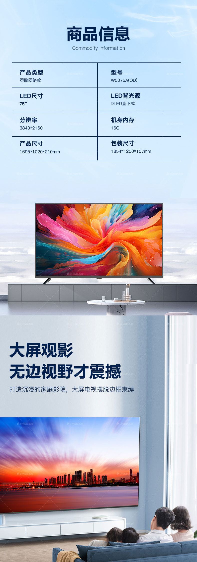 Chigo 85inch LCD TV 초박형 65inch TV 곡면 스크린 OLED 수출용 TV 스마트 TV스토어 가기