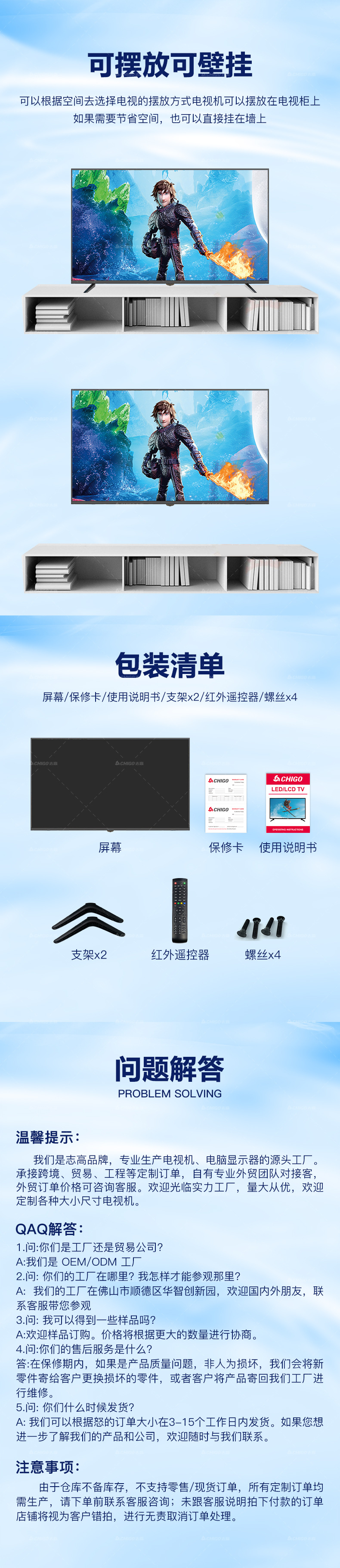 Chigo 85inch LCD TV 초박형 65inch TV 곡면 스크린 OLED 수출용 TV 스마트 TV