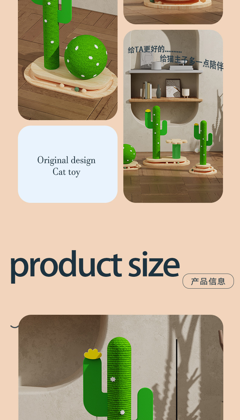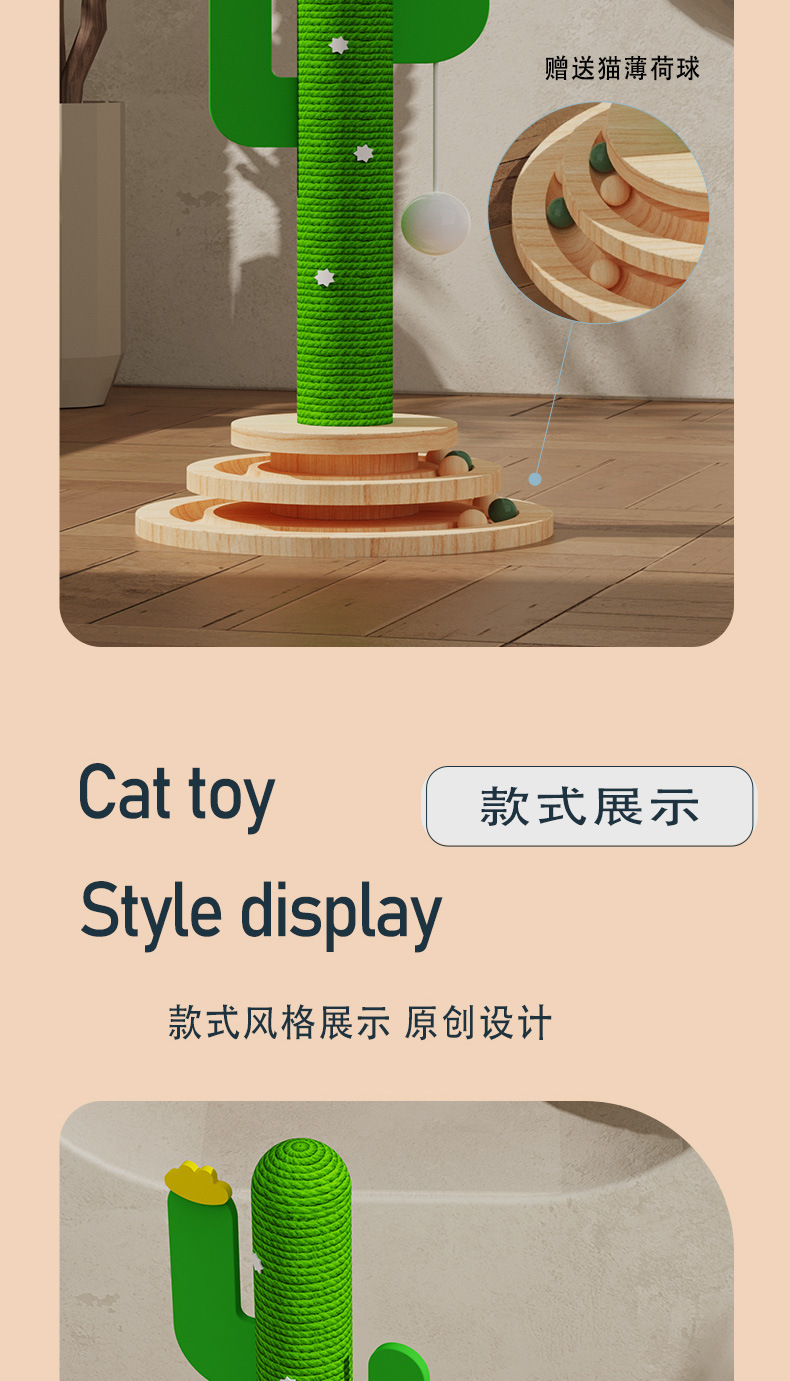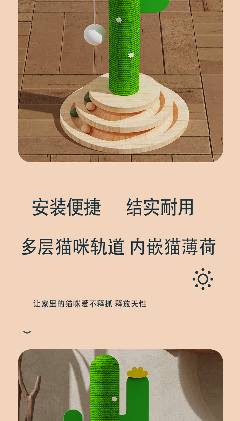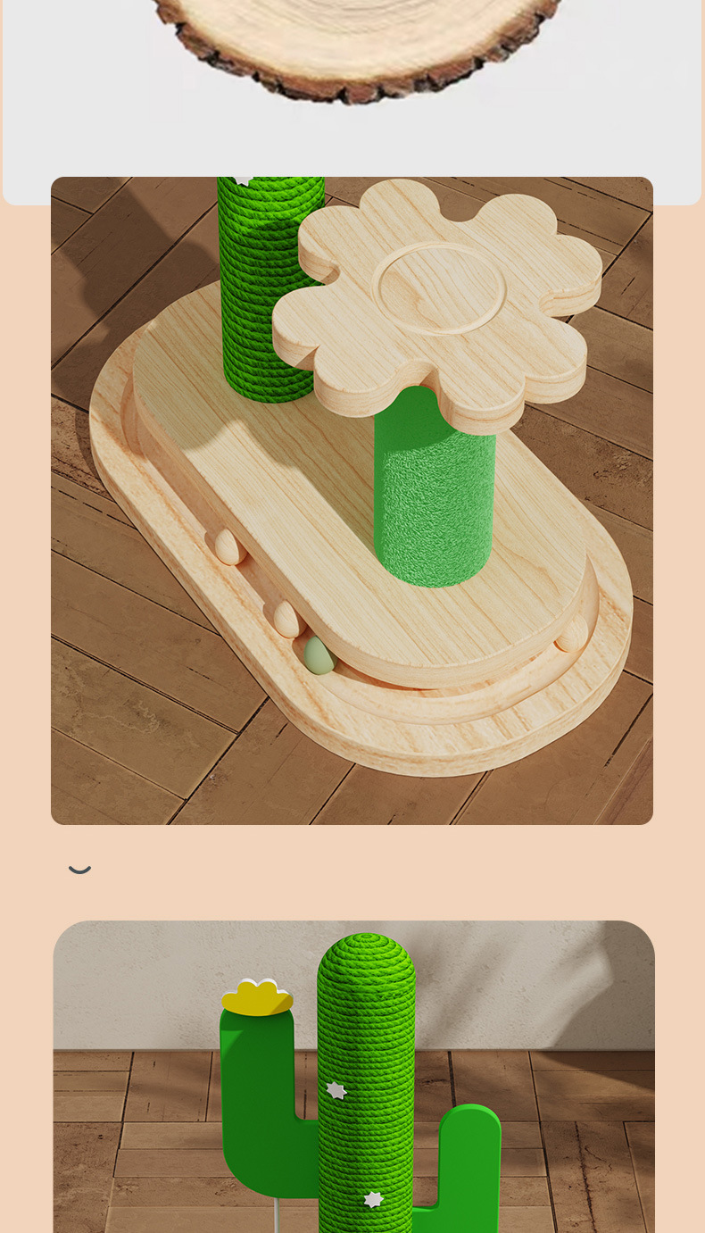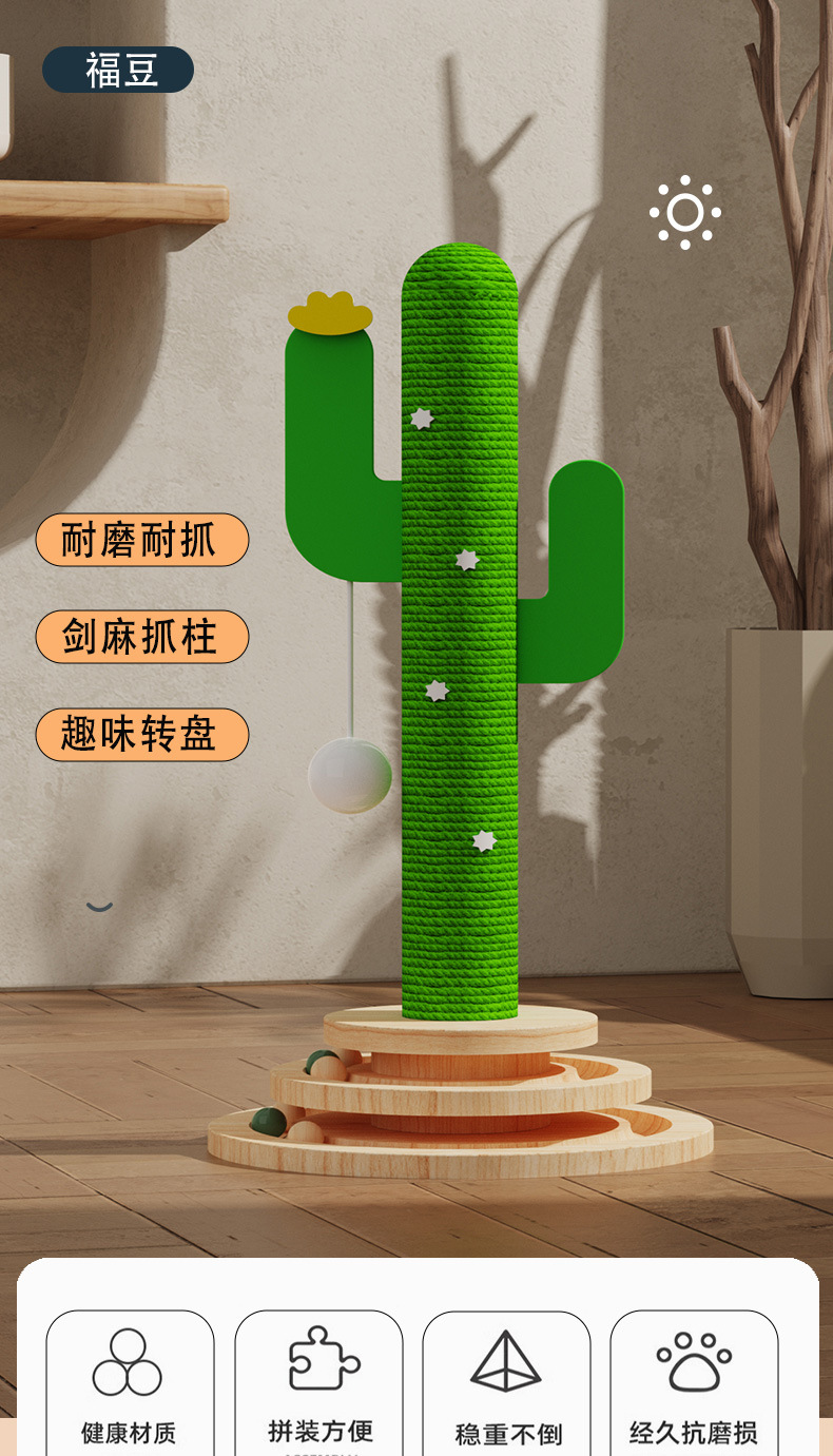 선인장 고양이 장난감 턴테이블 그립 기둥 단단한 나무 고양이 턴테이블 내마모성 그립 고양이 등산 랙 통합 자기 재미있는 고양이 장난감