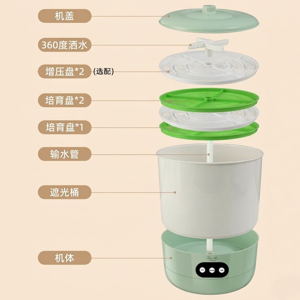 콩나물 기계 가정용 지능형 콩나물 기계 대용량 발아 기계 자동 자체 제작 작은 녹두 새싹 모종 관개 포트스토어 가기