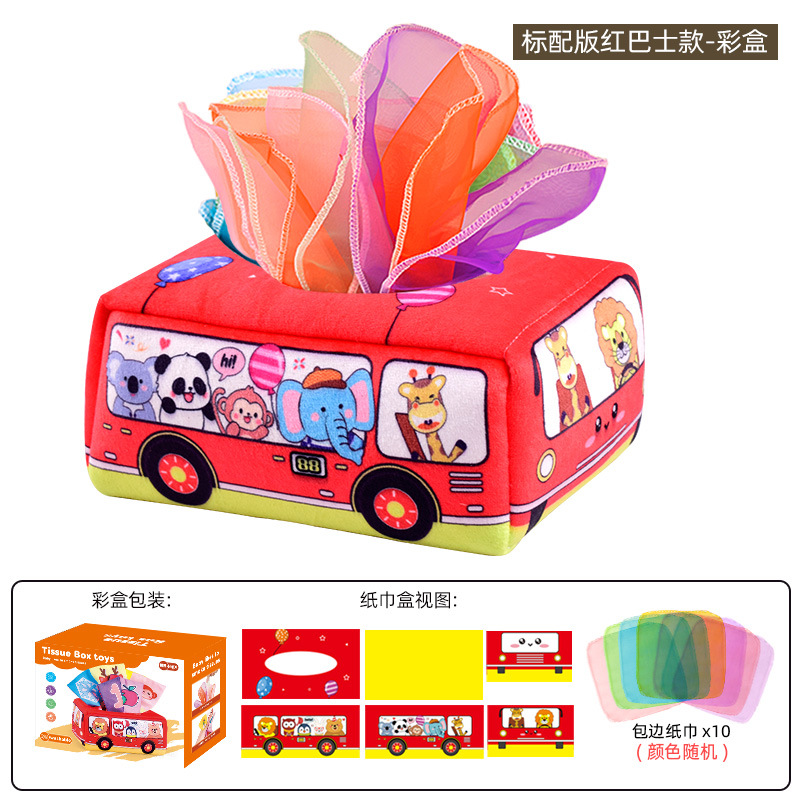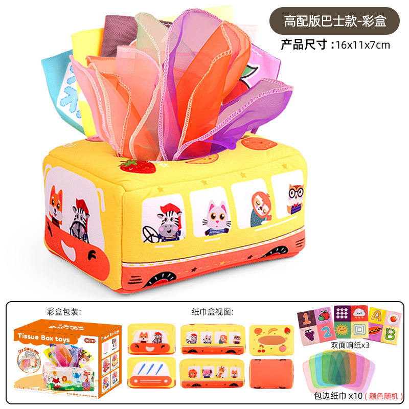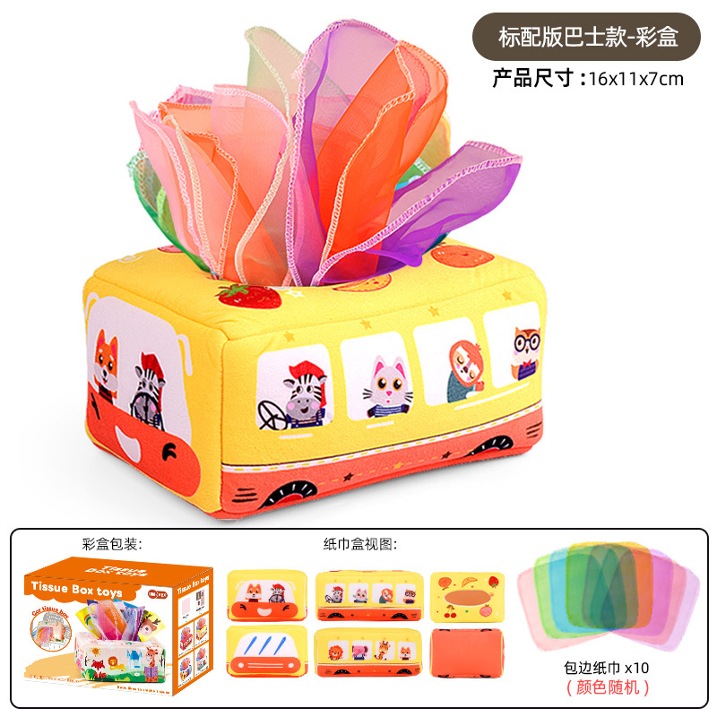 • 노란색 버스 티슈 케이스 (10개 스카프 + 3개 바스락거리는 종이 포함, 컬러 박스 포장)