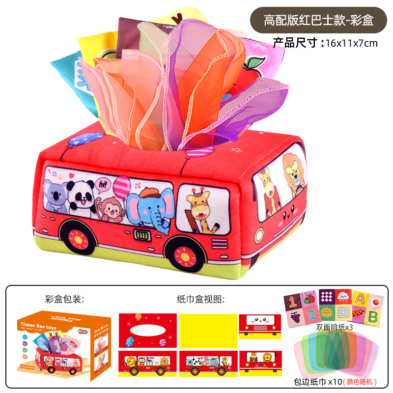 • 빨간 버스 모양 티슈 케이스 (10개 스카프 + 3개 바스락거리는 종이 포함, 컬러 박스 포장)
