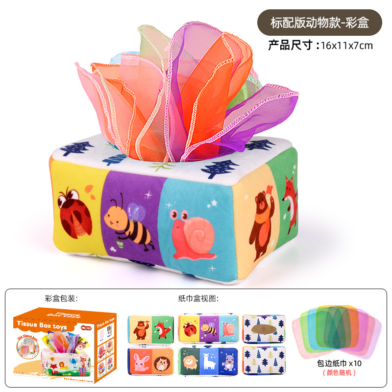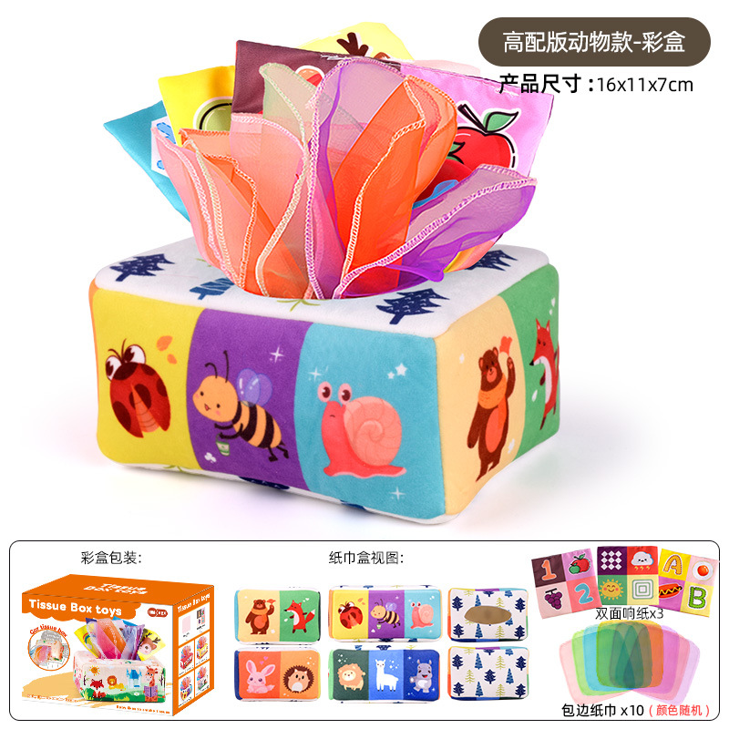 • 동물 디자인 티슈 케이스 (10개 스카프 + 3개 바스락거리는 종이 포함, 컬러 박스 포장)