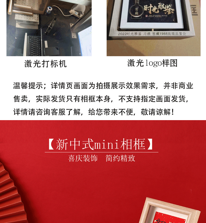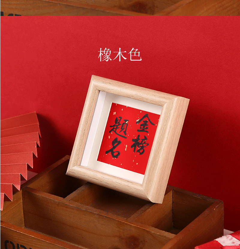 새로운 중국 미니 사진 프레임 광장 중공 그림 프레임 테이블 3 차원 나무 평화와 기쁨 데스크탑 장식품