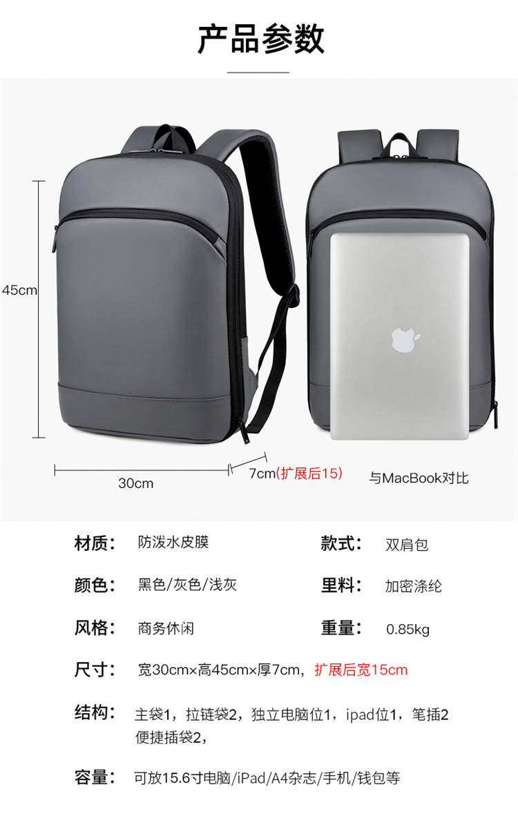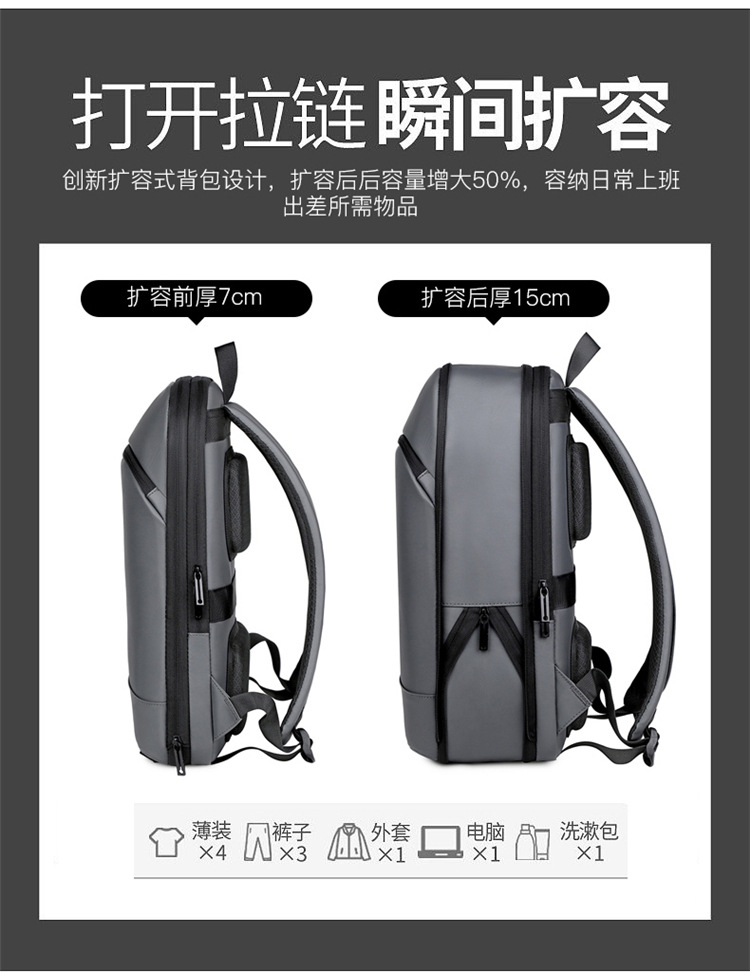 초박형 컴퓨터 가방 확장 가능한 배낭 패션 캐주얼 비즈니스 수납 배낭 인쇄 로고 접이식 배낭