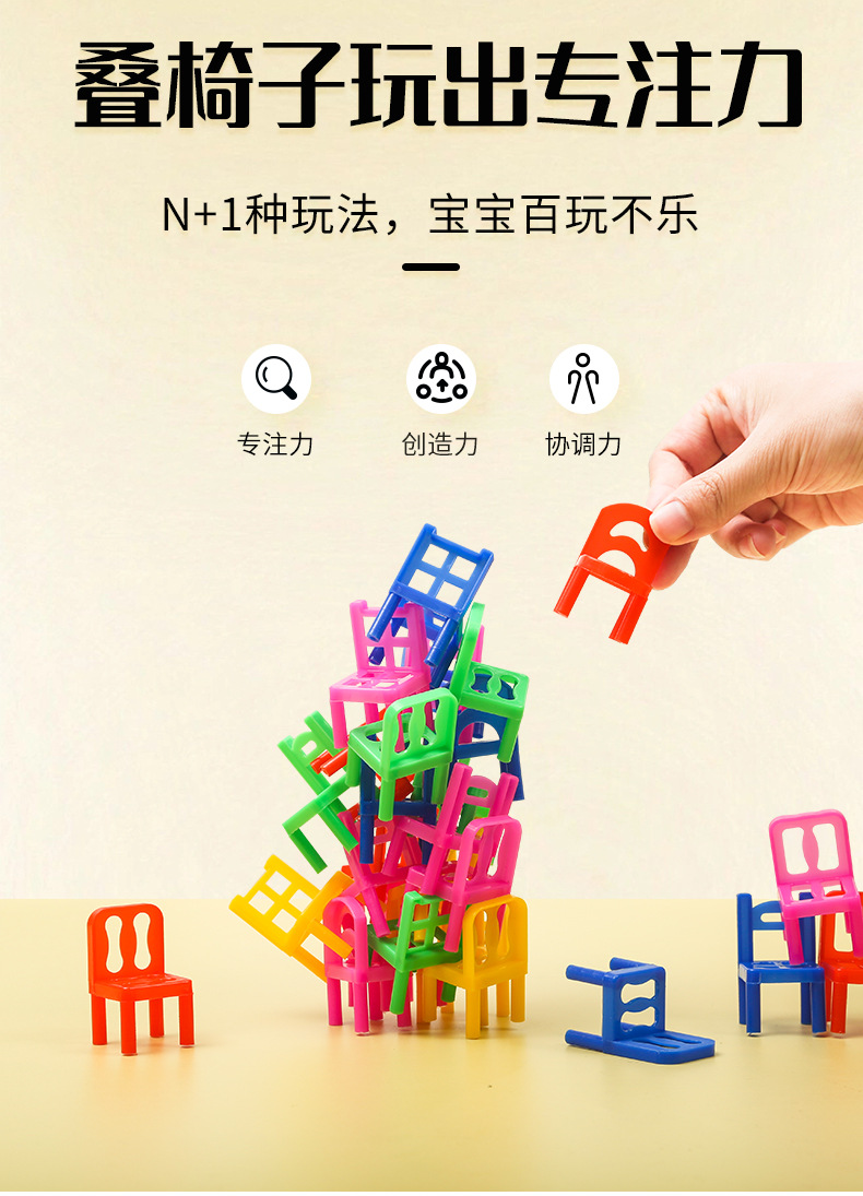 어린이 스태킹 블록 장난감 의자 부모-자식 상호 작용 멀티 플레이어 데스크탑 교육 보드 게임 사고 훈련 보물 장난감