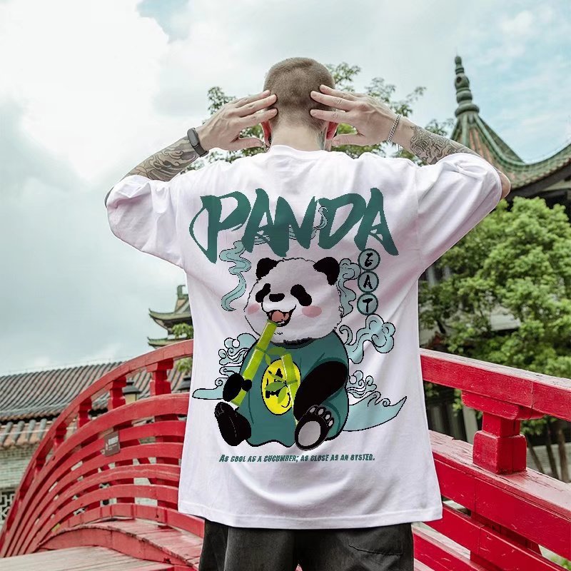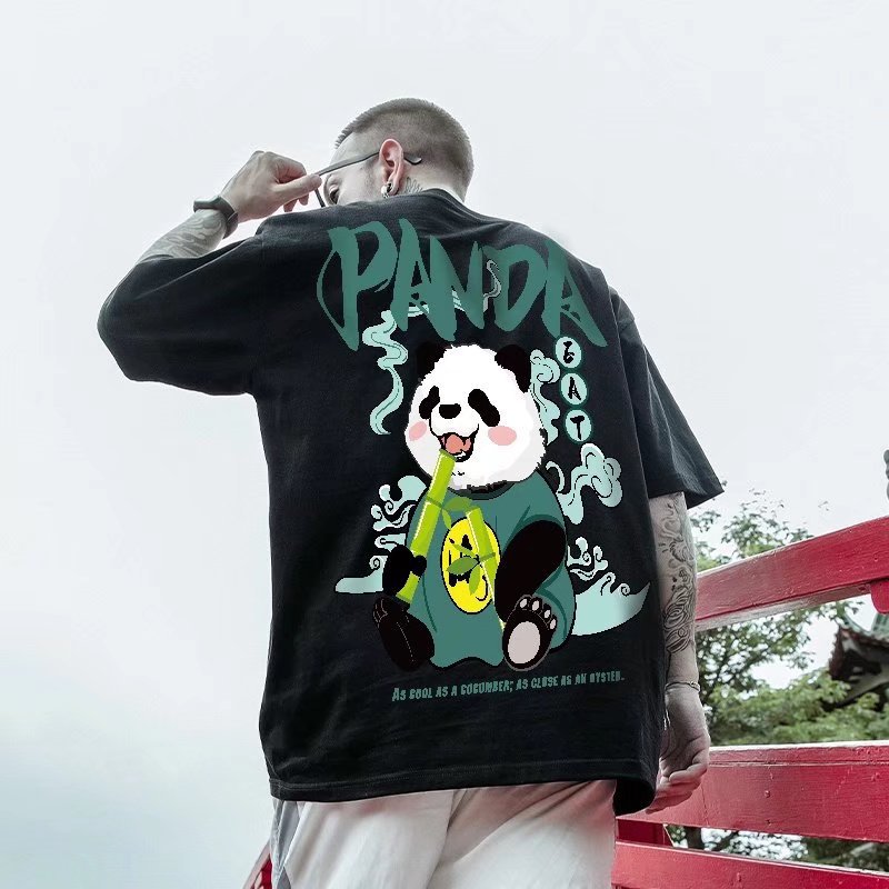 T07 폴리에스터 인쇄 반팔 티셔츠 M-8XL 반소매 전국 유행 판다 뚱뚱한 남자의 유행 느슨한 여름스토어 가기