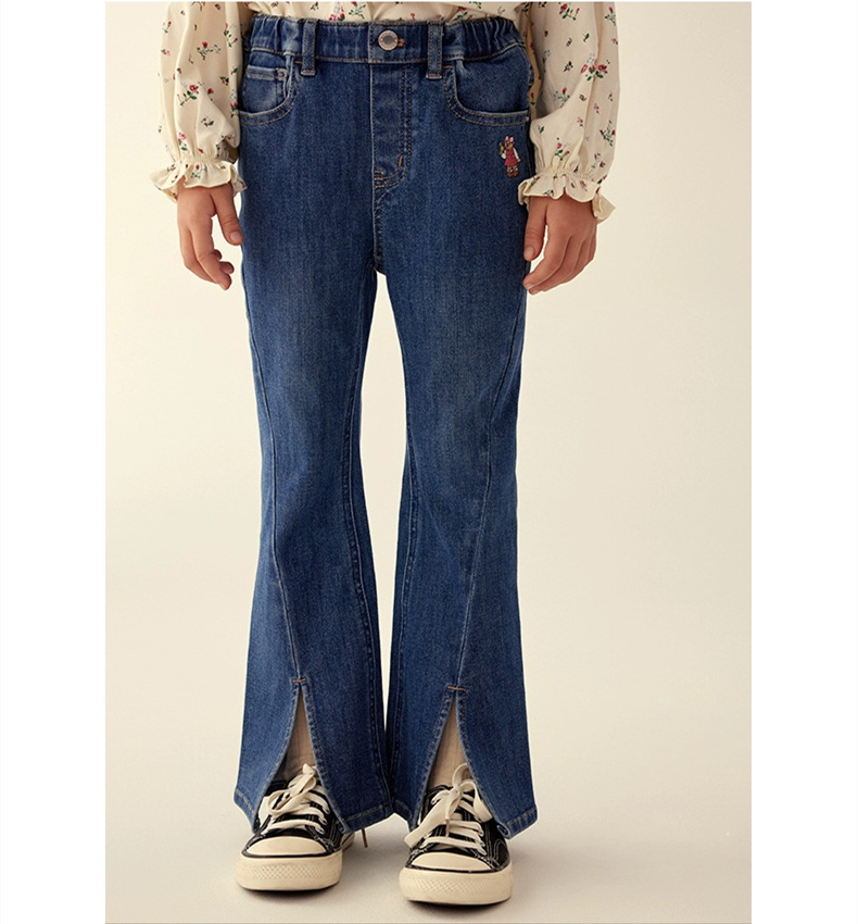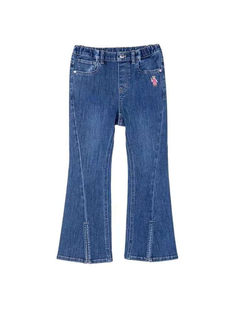 SDTW 리틀베어 여아 가을겨울 패션 마이크로 플레어 슬릿 데님 팬츠 한국 스타일 바지 TKTJ234952B
