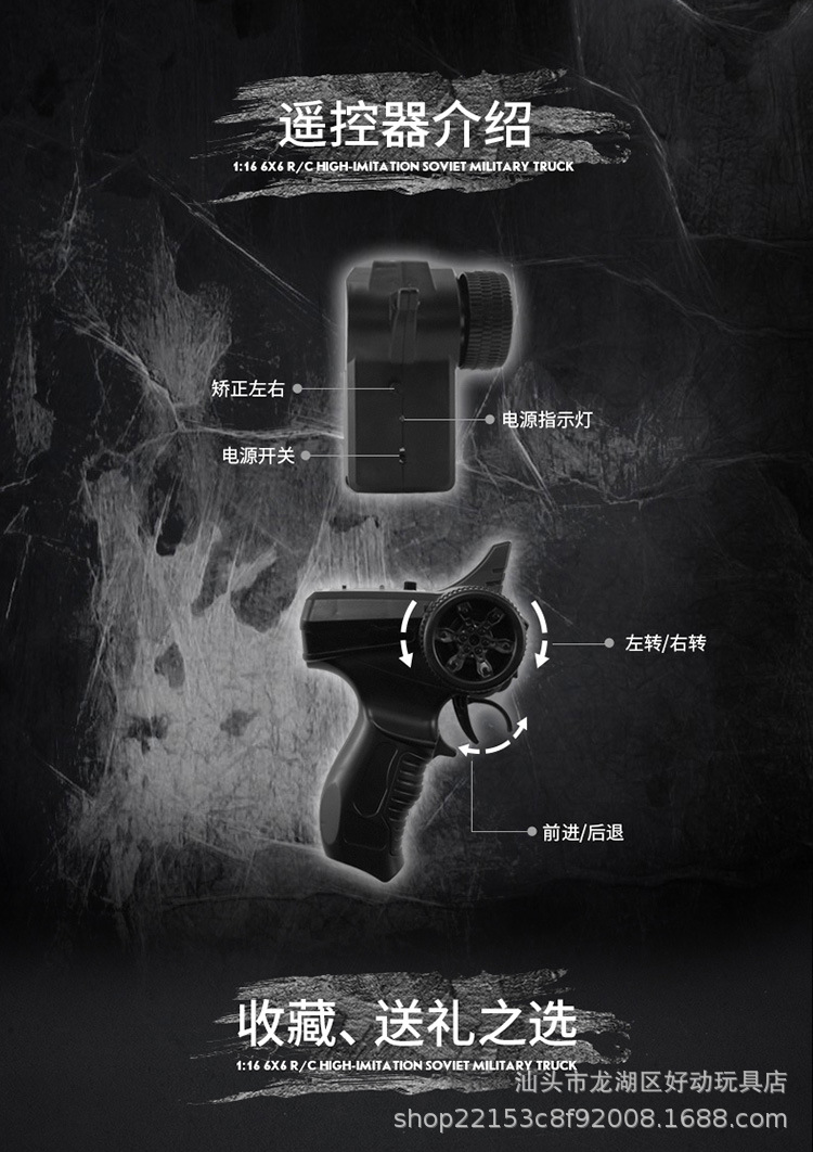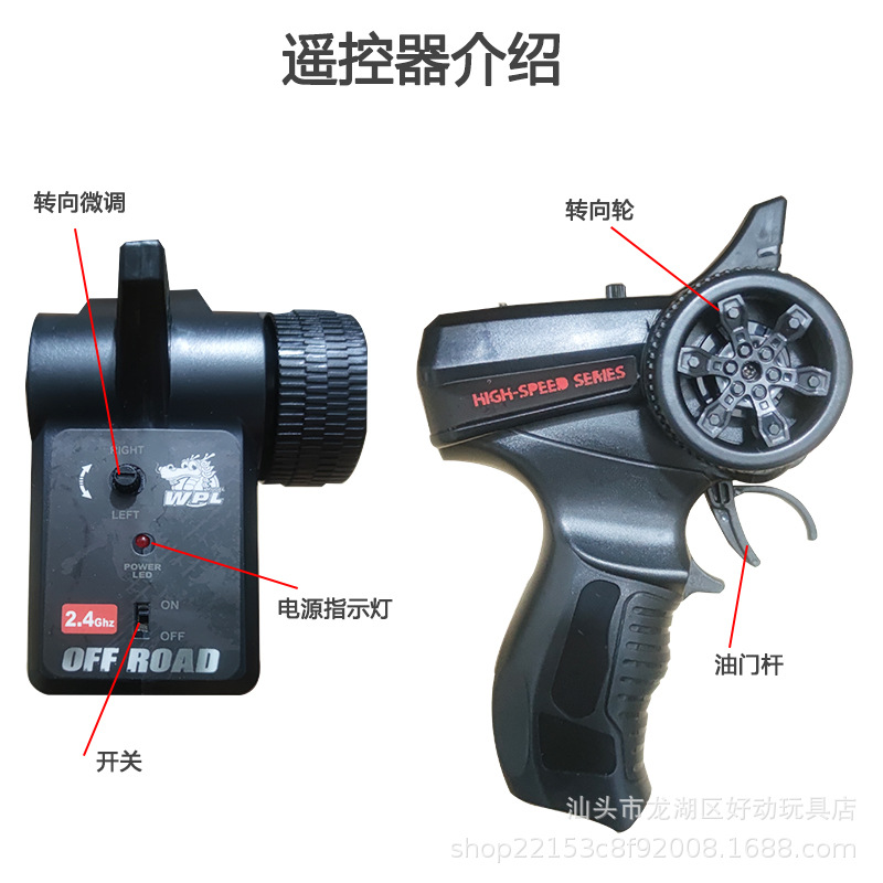 整车RTR版配置参数:遥控车,遥控器,180电机,7.4V 500MAH电池,充电线1条,三线17克舵机,带前大灯,金属大梁,车桥金属齿轮