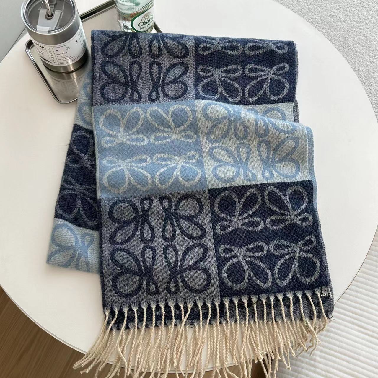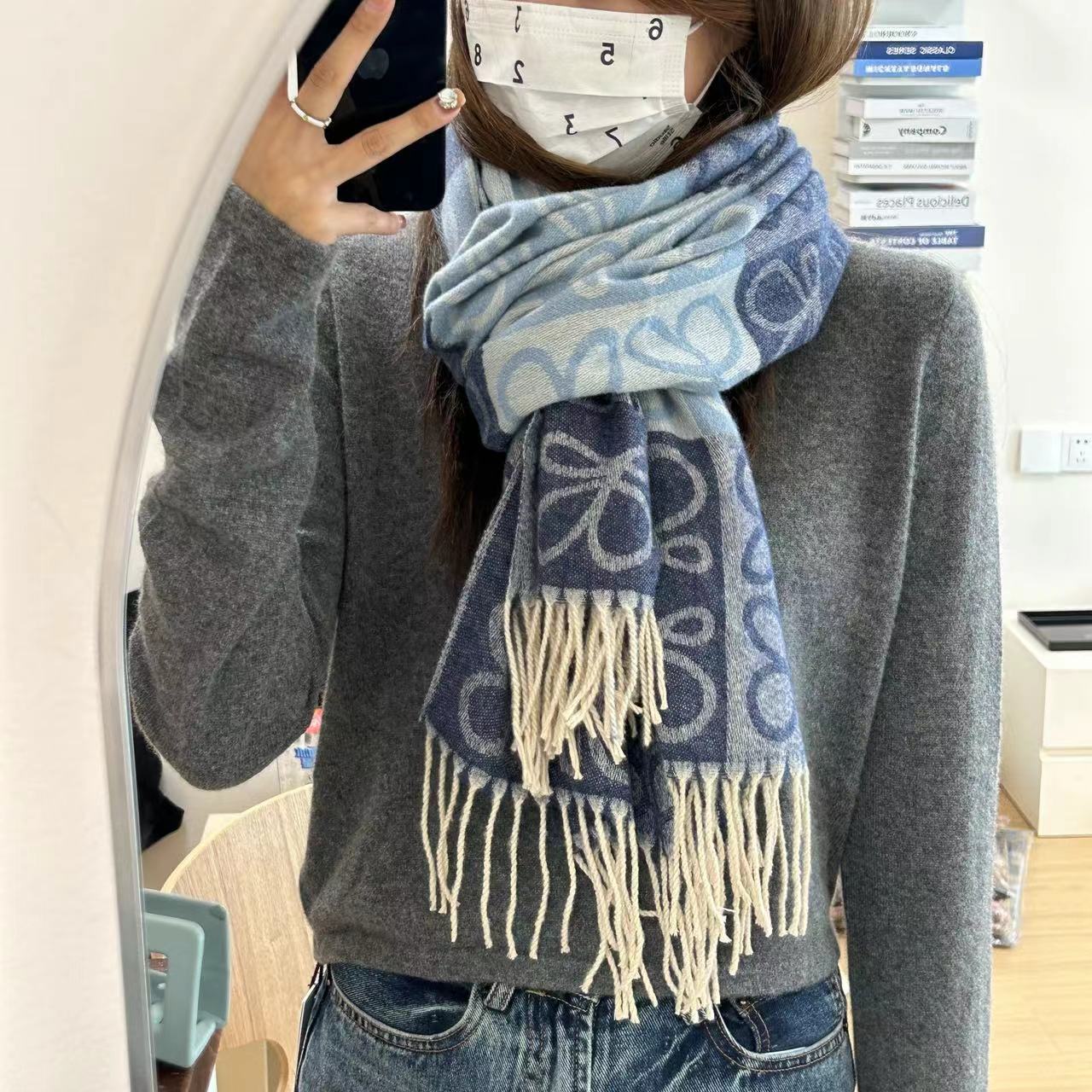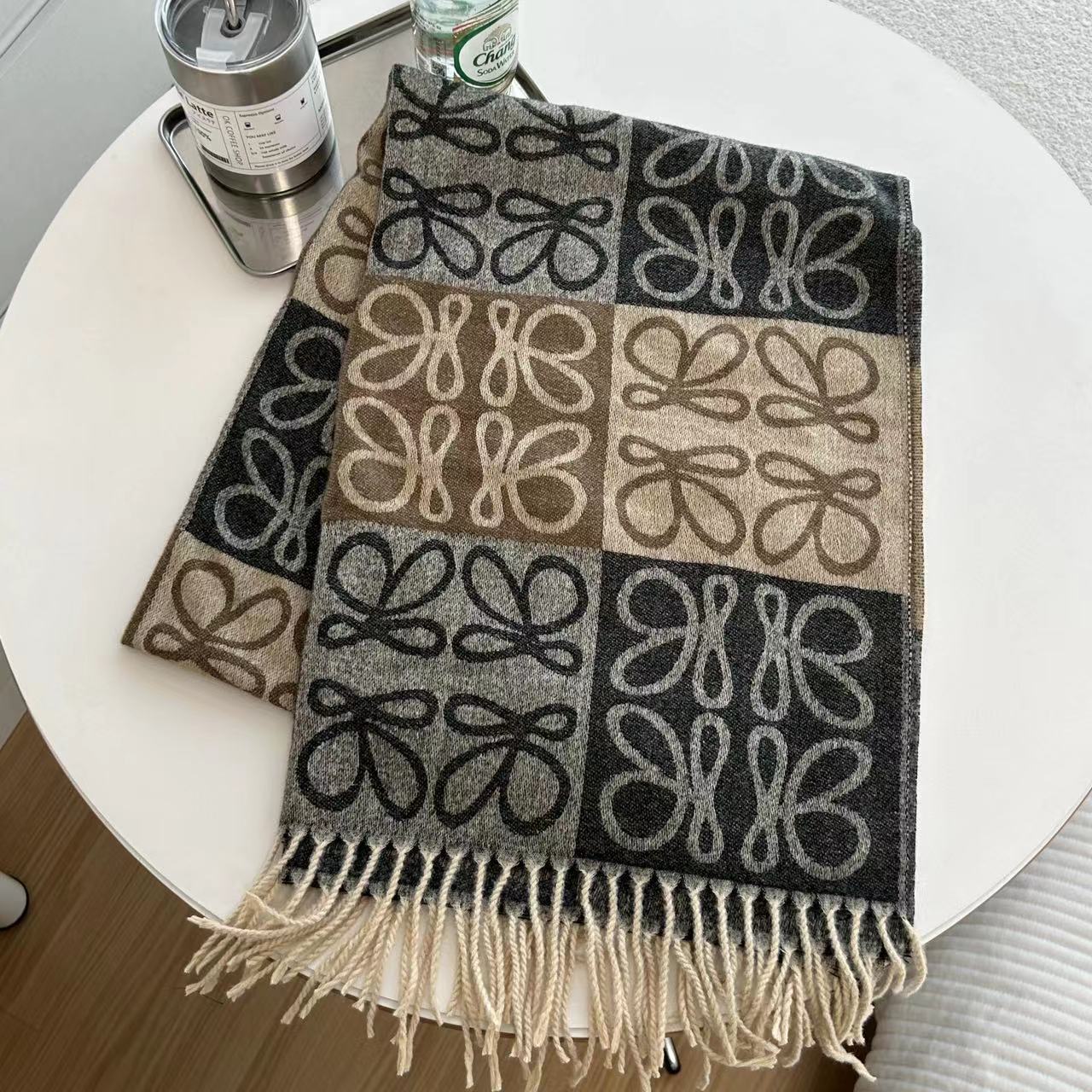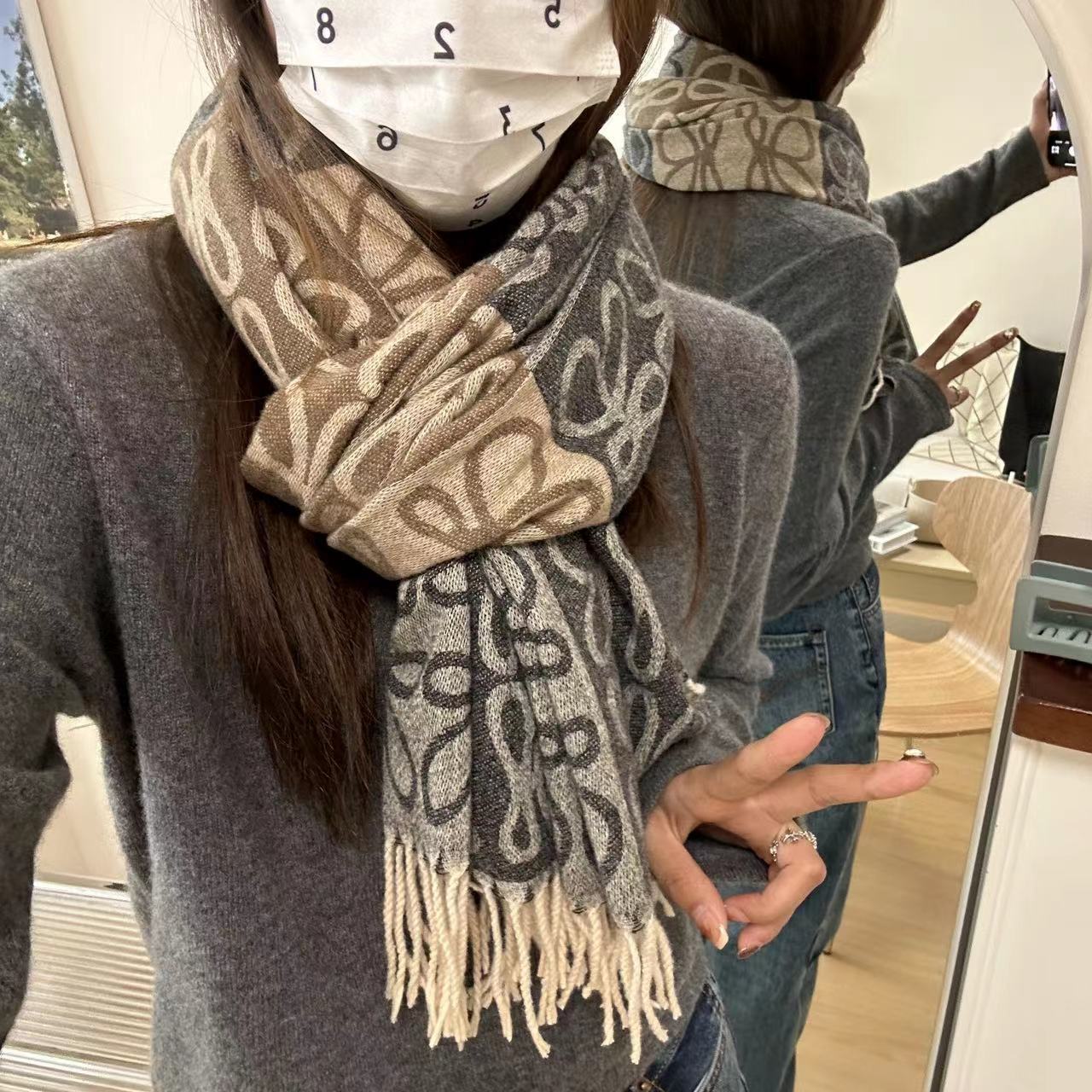 낮은 같은 스타일 낮은 Presbyted 꽃 격자 무늬 스카프 여성의 가을과 겨울 패션 따뜻한 자카드 바둑판 술 모조 캐시미어 패션스토어 가기