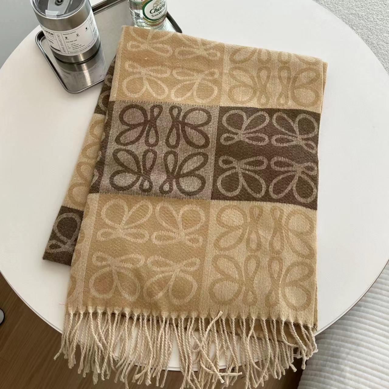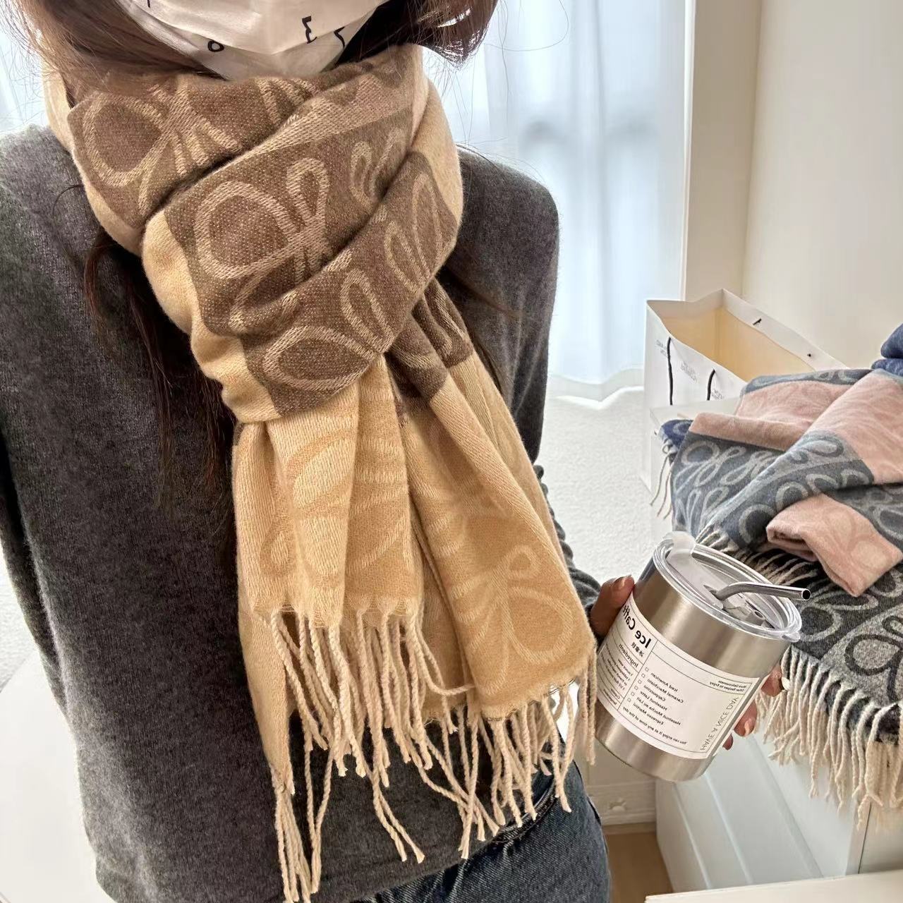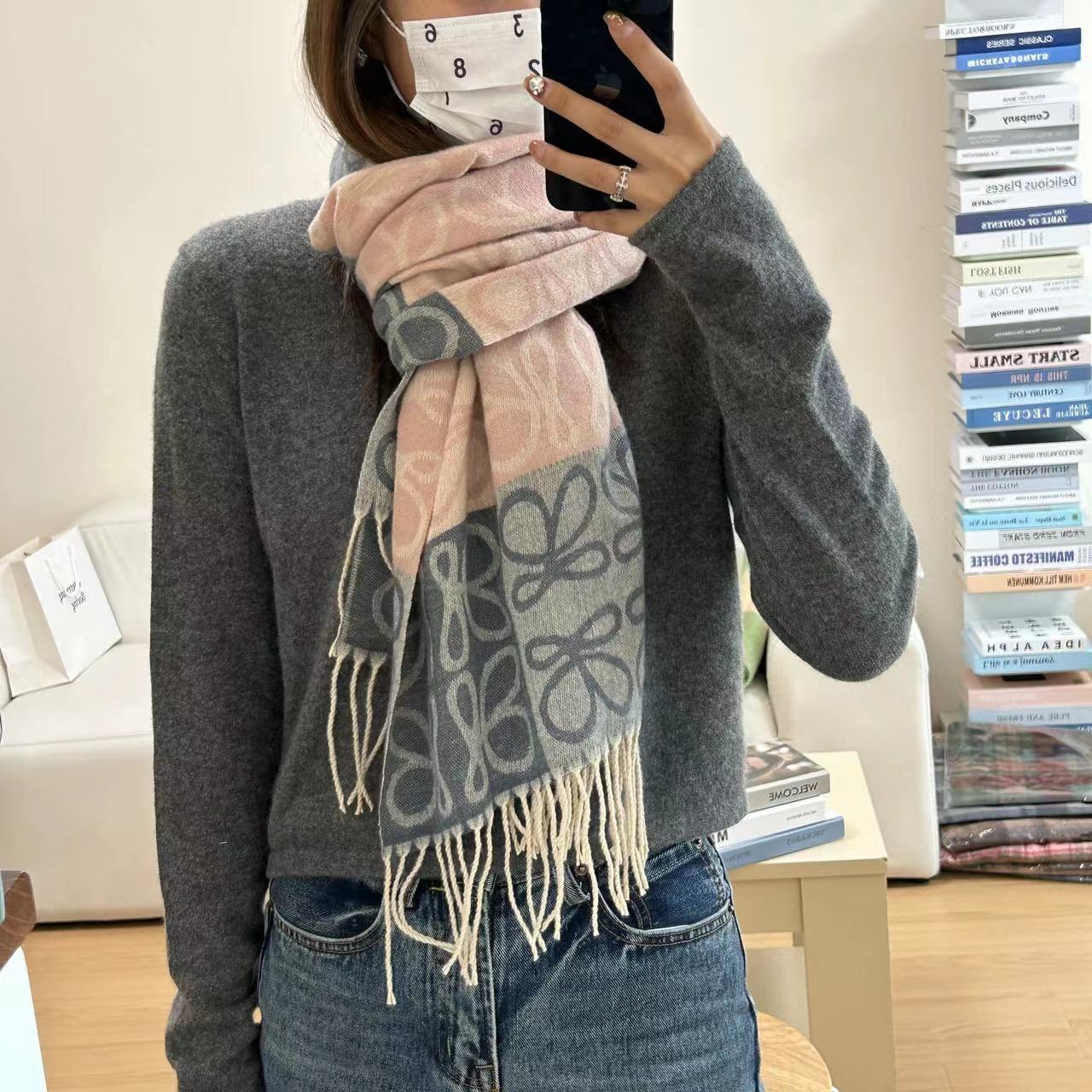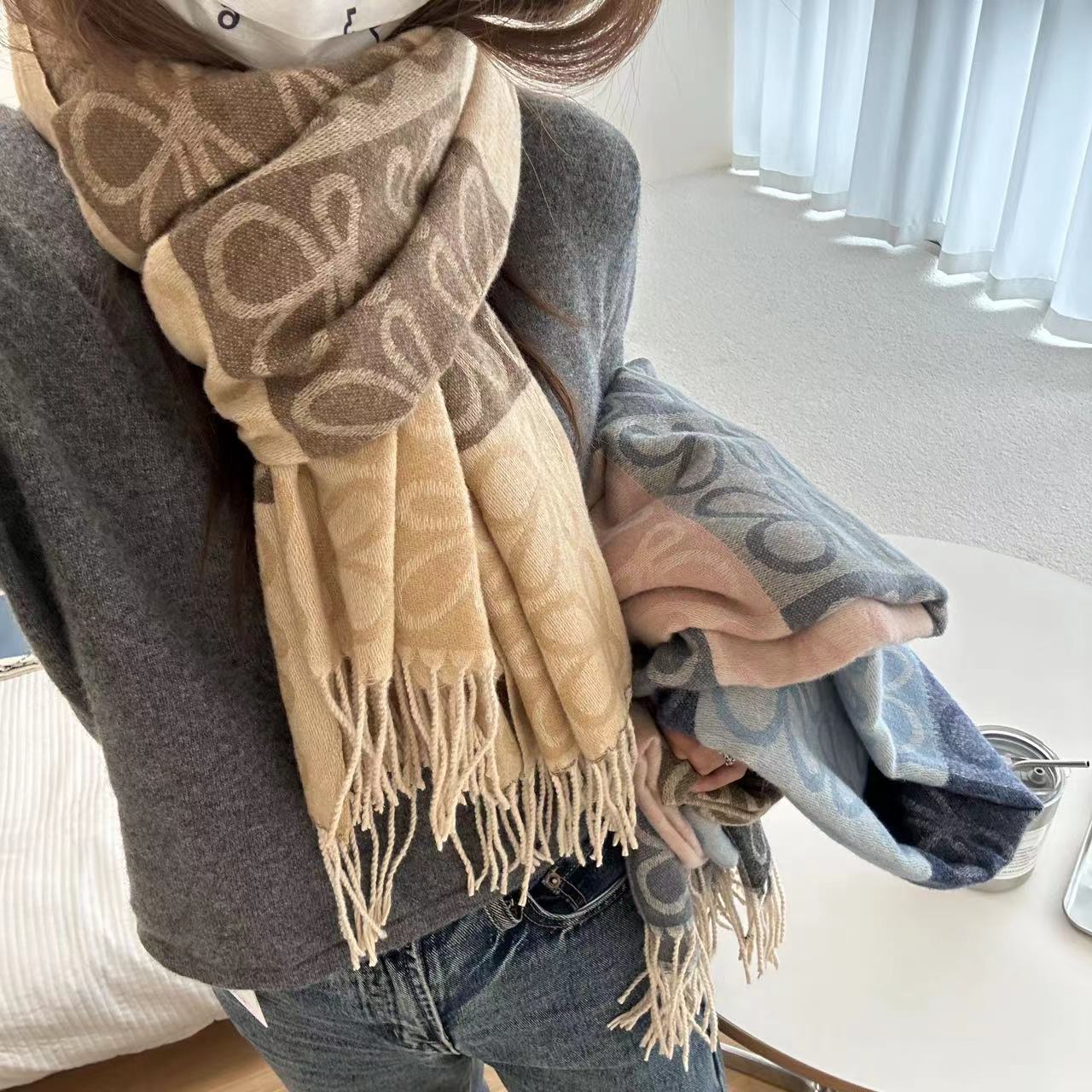 낮은 같은 스타일 낮은 Presbyted 꽃 격자 무늬 스카프 여성의 가을과 겨울 패션 따뜻한 자카드 바둑판 술 모조 캐시미어 패션스토어 가기