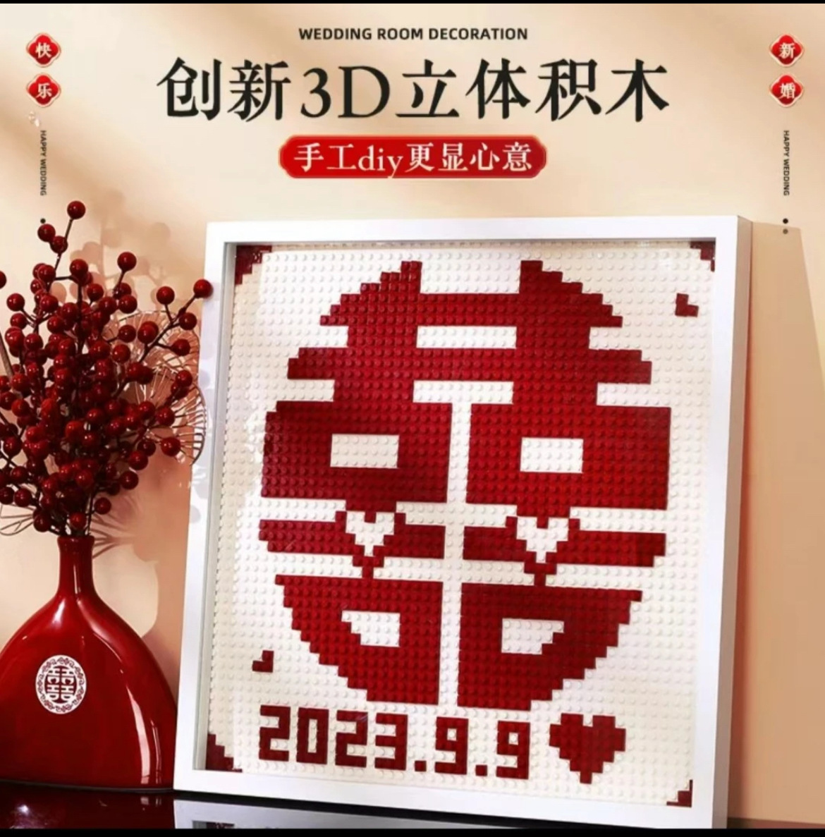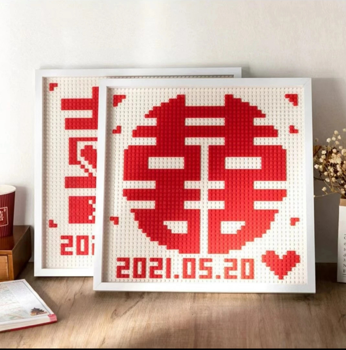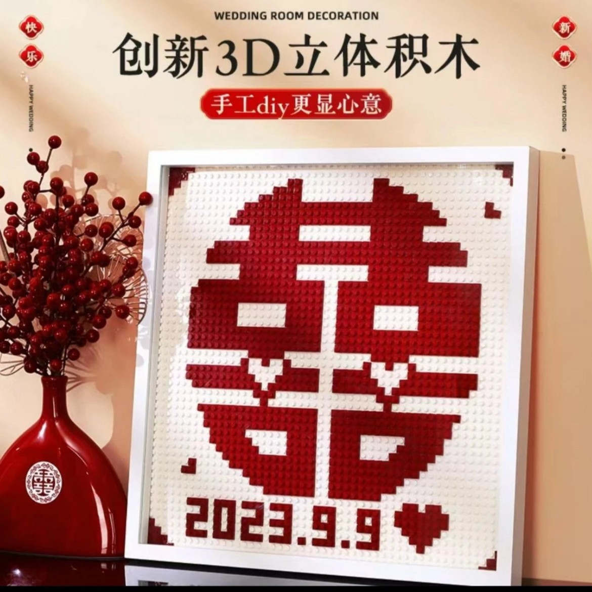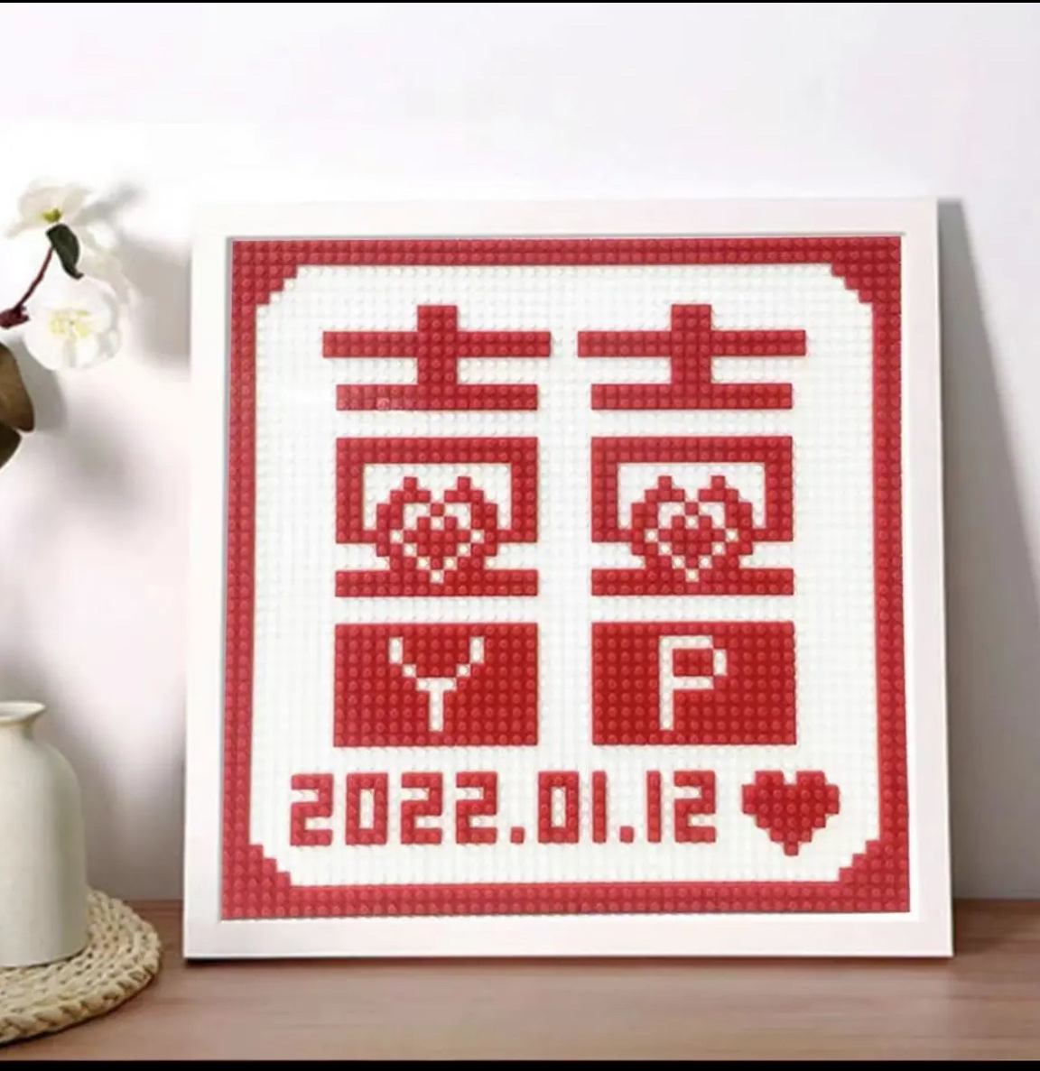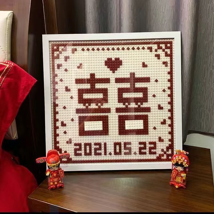 빌딩 블록 Xi 캐릭터 사진 프레임 수제 DIY 결혼 선물 여자 친구 결혼 선물 새 커플 창조적 인 baixi 선물 어셈블리 장식스토어 가기
