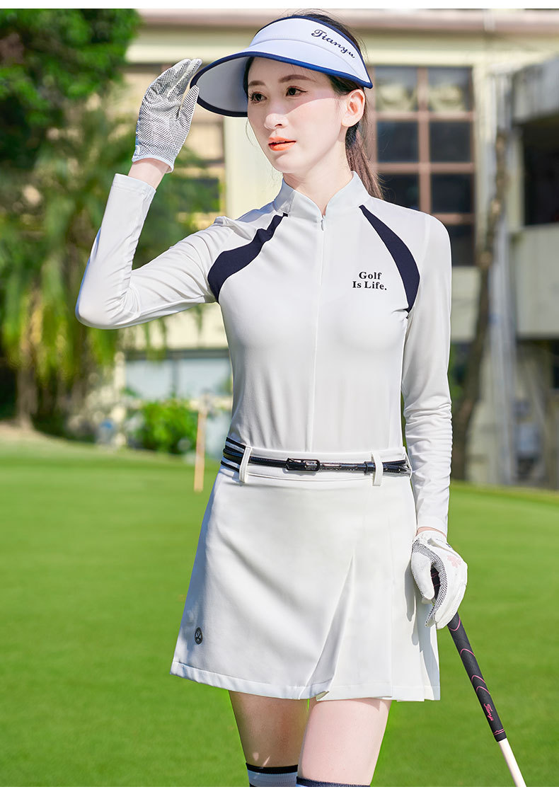 TTYGJ 봄과 가을 새로운 골프 여성용 슬림핏 슬리밍 긴팔 티셔츠 탄성 속건 골프 여성용 긴팔