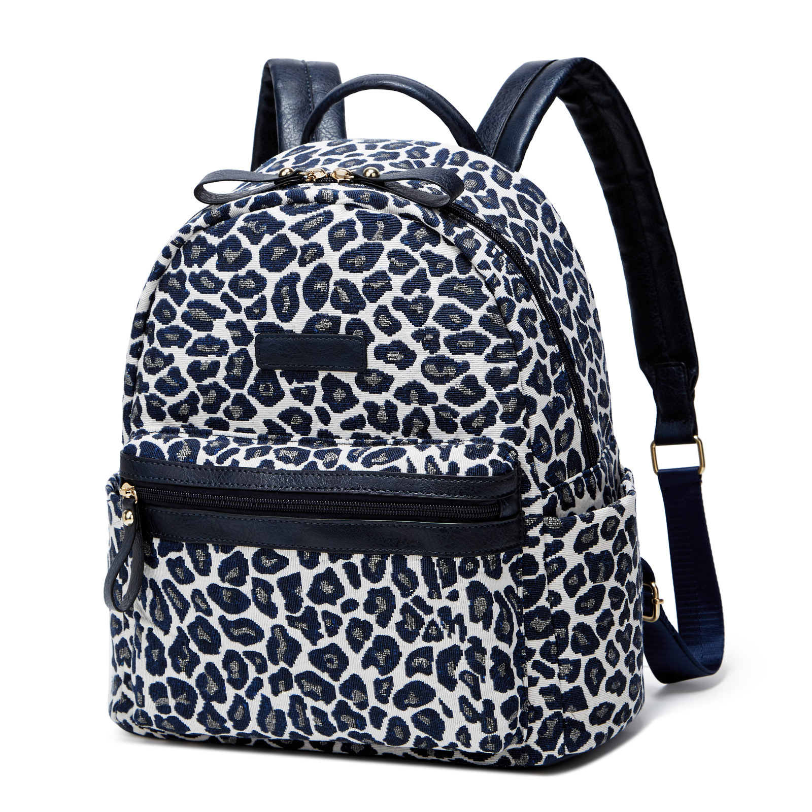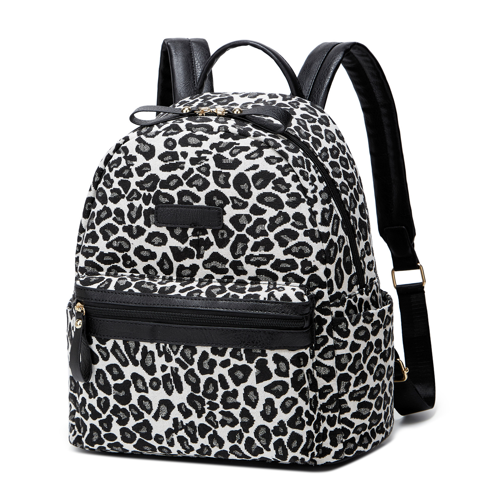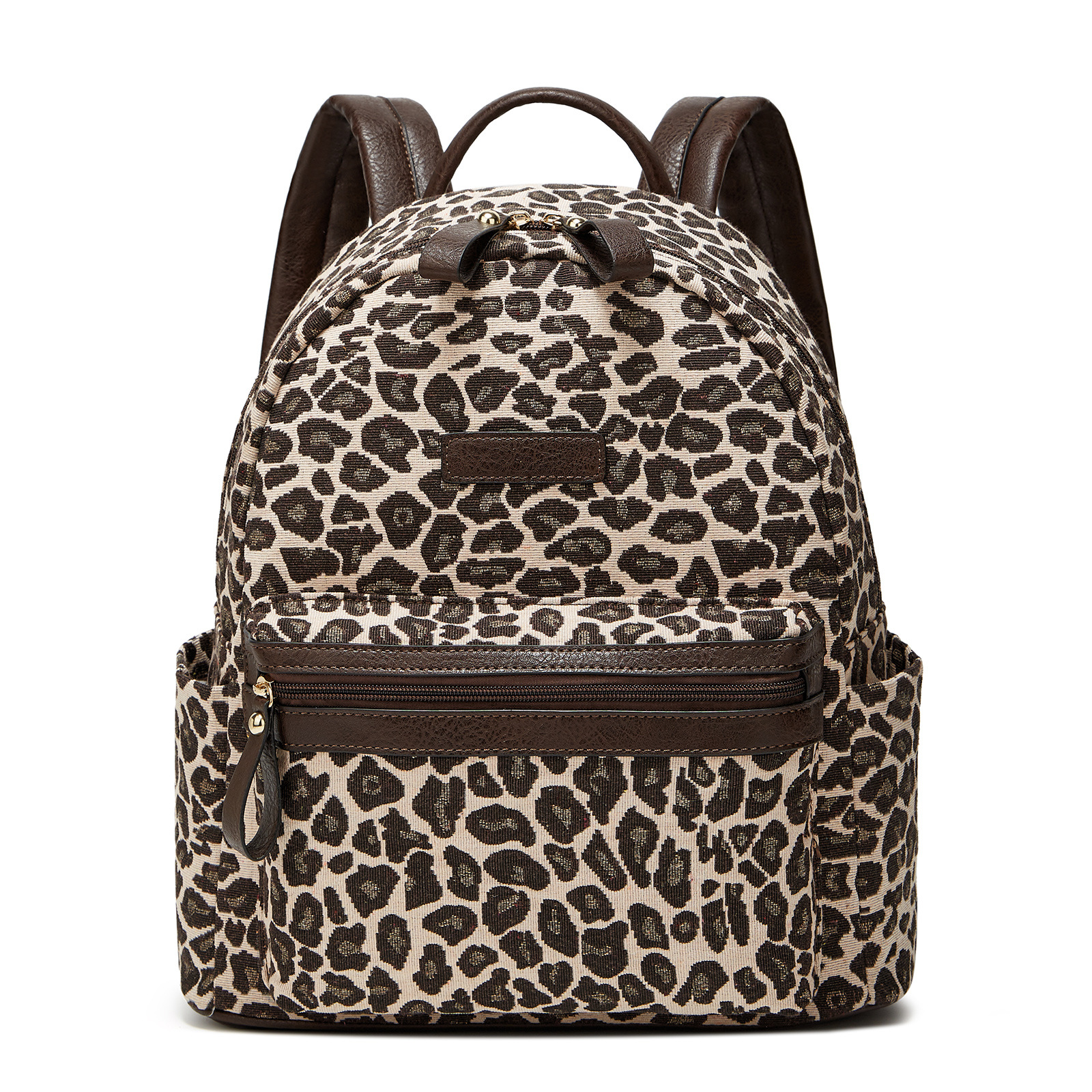 레트로 스타일 2023 가을과 겨울 새로운 레오파드 무늬 PU 스티치 지퍼 배낭 멀티 포켓 캐주얼 여성 가방 재고스토어 가기
