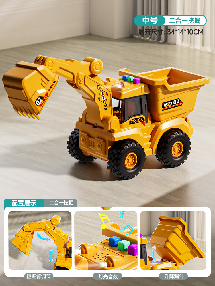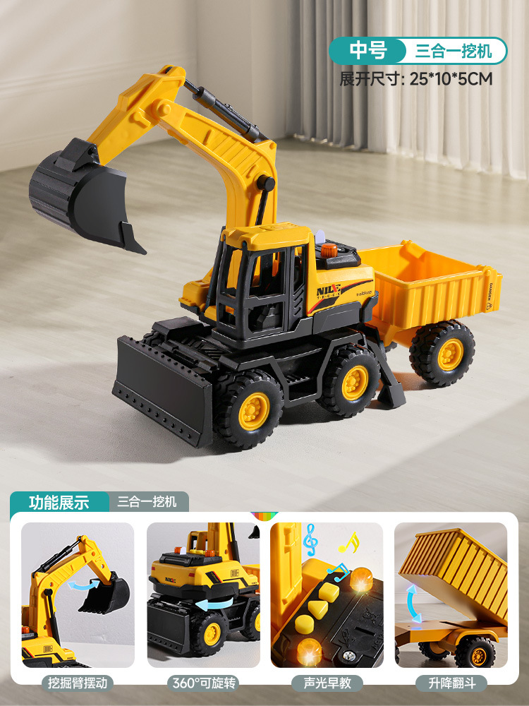 • 대형 [3-in-1-선물 상자] 소리와 빛의 굴삭기(굴삭기 + 불도저 + 덤프 버킷)